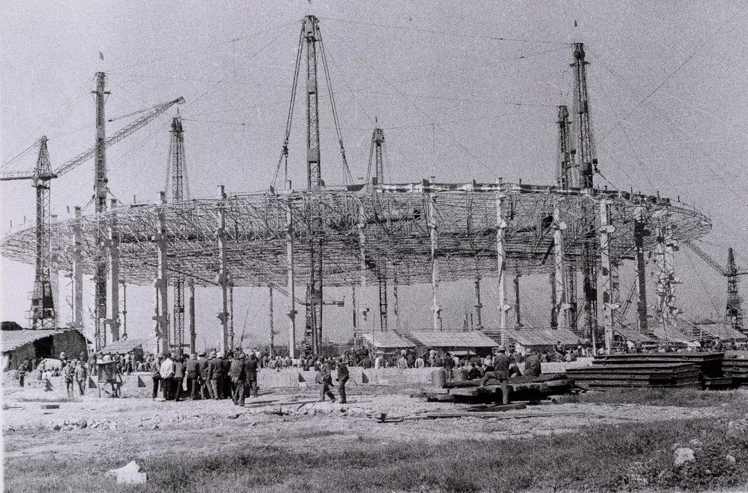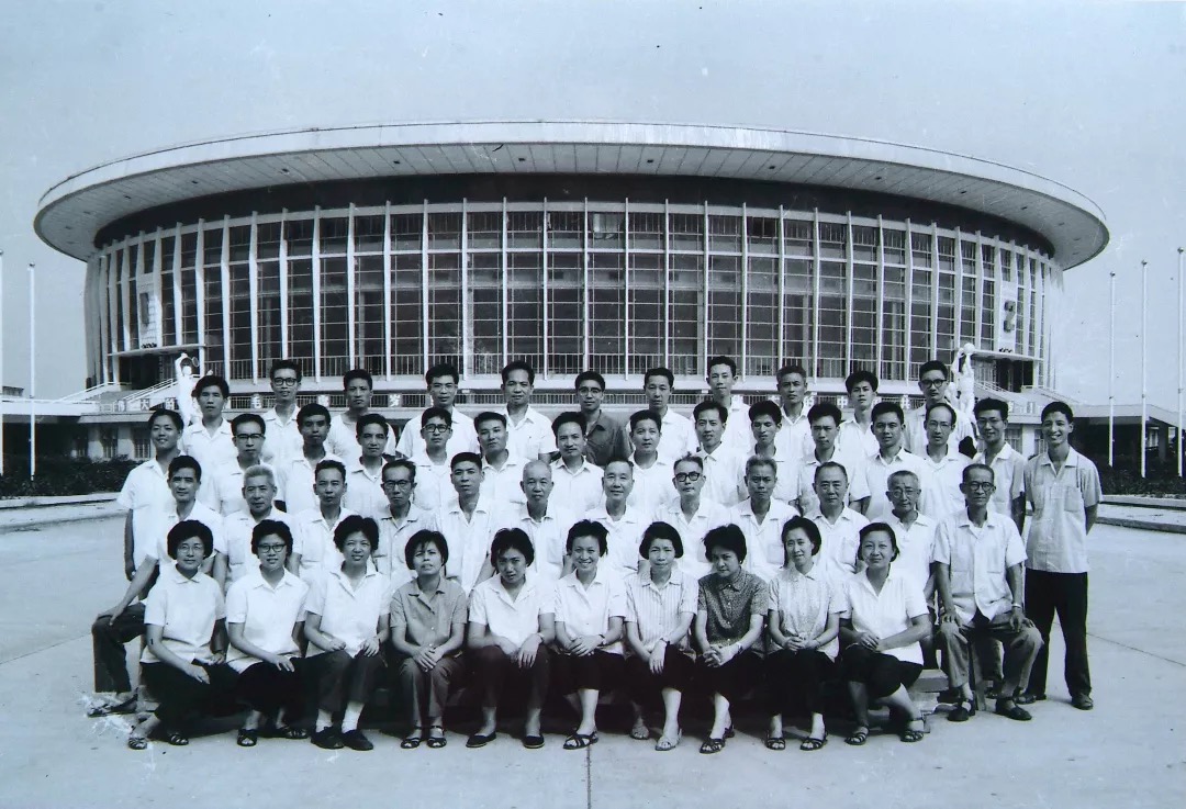 新中国成立后的1959年,北京举办了首届全国运动会。这一年,上海建设万人体育馆的设计也被提上议事日程,设计重任落在了上海院身上。不久因一系列原因,项目停滞下来,而这一停就是十多年。1973年初,项目重新启动,上海院采取边设计、边施工的办法,由时任副院长汪定曾带领40多位工程技术人员常驻现场。建成后的上海体育馆是我国第一个可容纳万人以上的体育馆,也是我国第一个大跨度网架结构,并首创采用整体吊装提升的安装方式,载入了《世界建筑史》。