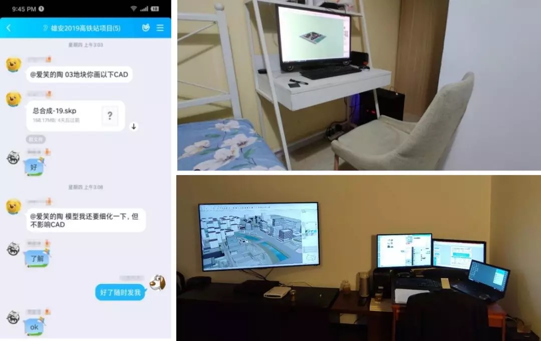 2020年伊始,新冠疫情尚未离去,雄安新区开发持续如火如荼。雄安项目有比较强的特殊性,时间节点密集,汇报频率高,工作强度也大,在项目组居家办公期间,我们充分利用居家办公工作时间的灵活性,不仅保证日常的白天工作时间段,更是在得知第二天需要紧急汇报的前夜,加班加点,在城市的各个角落点亮屏幕,无间合作。