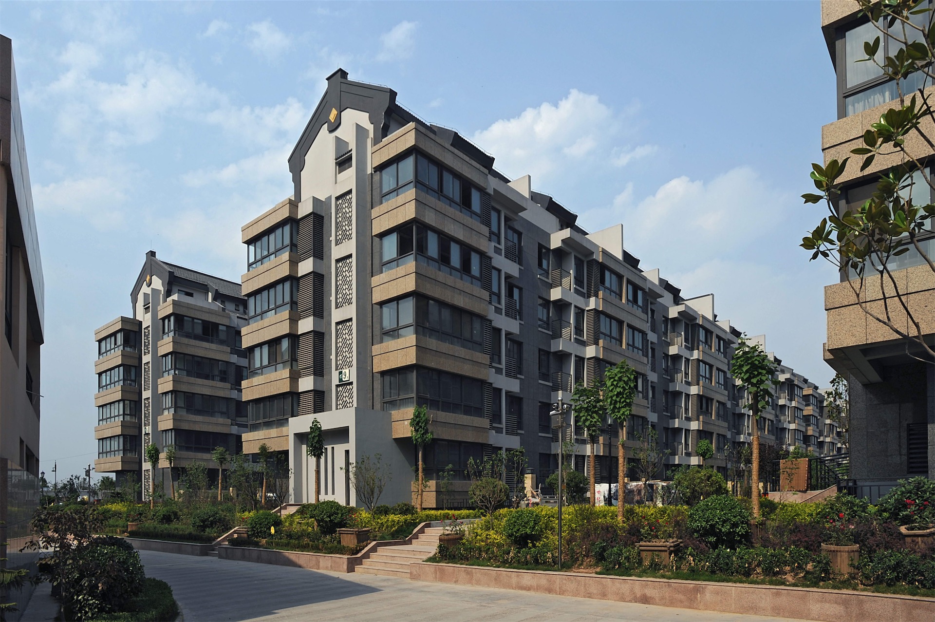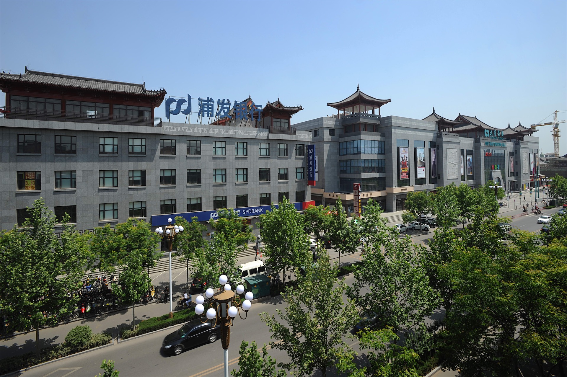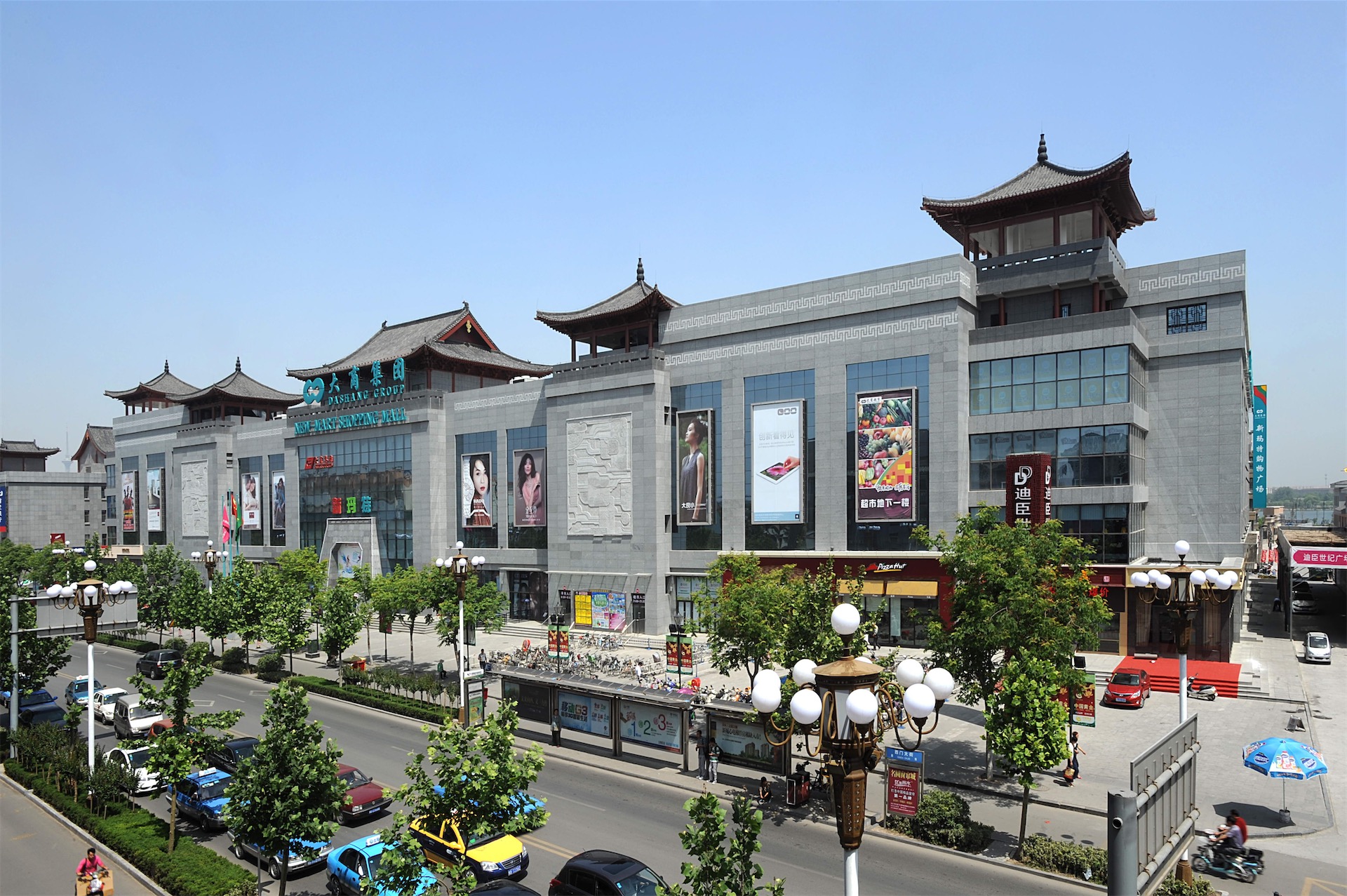 为协调城市总体风貌,在建筑造型上,沿城市道路的建筑外立面提取宋代传统符号进行设计,使得外观呈现出地方特色和历史感。同时将大体量的商业建筑切分成几块不同的虚实对比,使立面丰富多彩,青灰色的石材面层、定制的浮雕花色,宋式屋顶的亭子将整个建筑的风格统一为别具特色的仿古建筑。内部建筑设计则完全是现代设计手法,向人们传达了历史的信息和地域的文脉同时也反映了时代的特征。