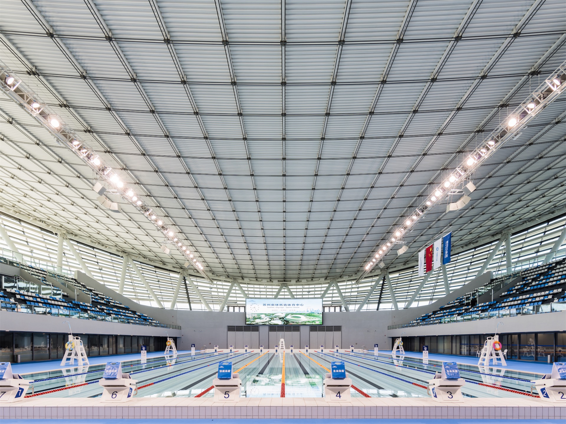苏州奥林匹克体育中心位于苏州工业园区内。项目由“一园一场两中心”组成:即一座体育公园,一个45000座体育场、3000座游泳馆、13000座体育馆、健身馆以及体育研发和配套服务中心。
