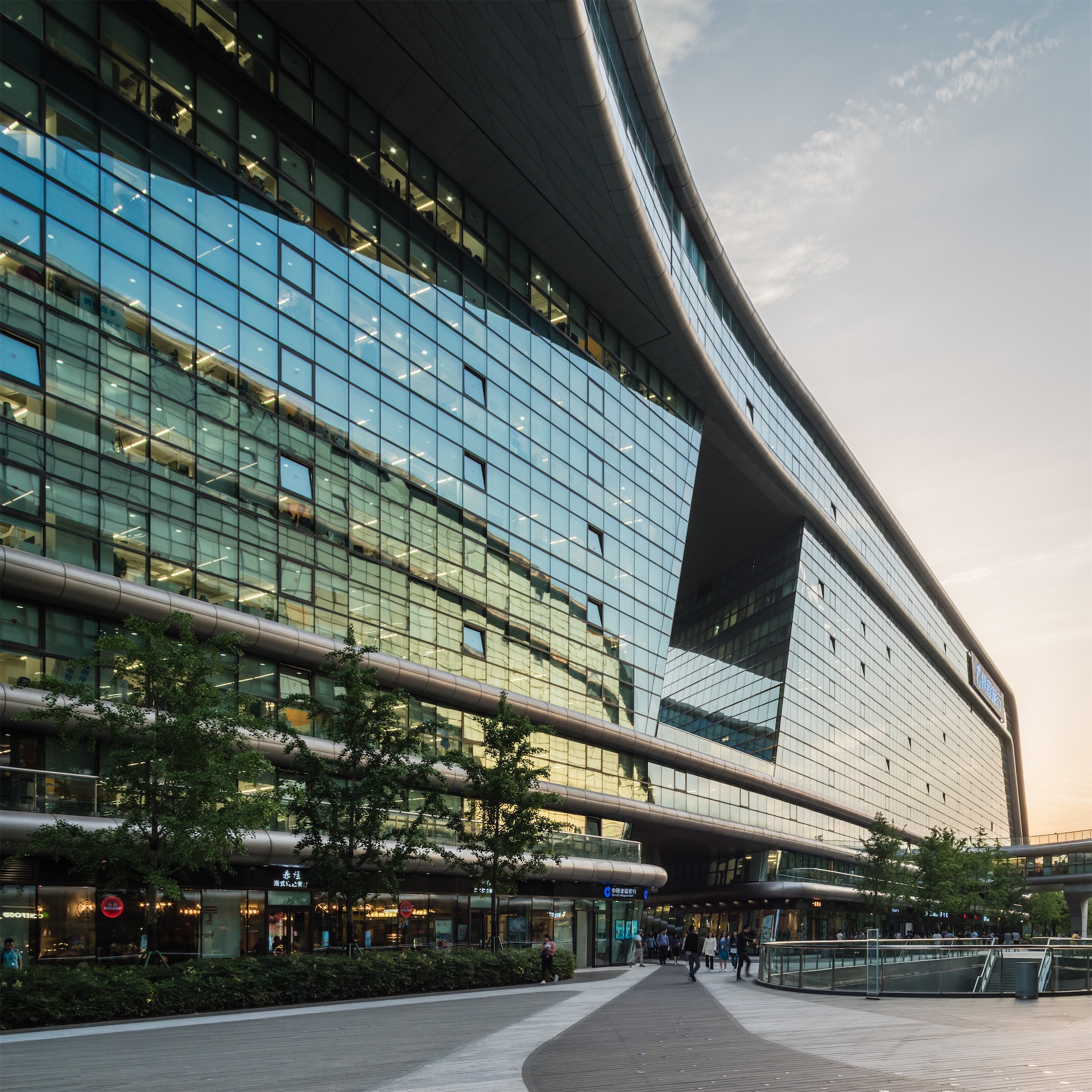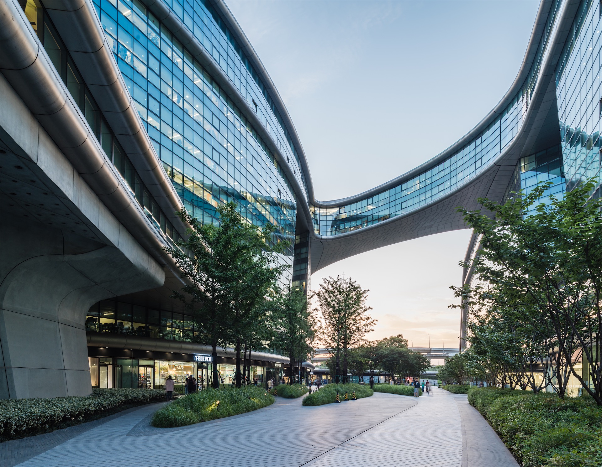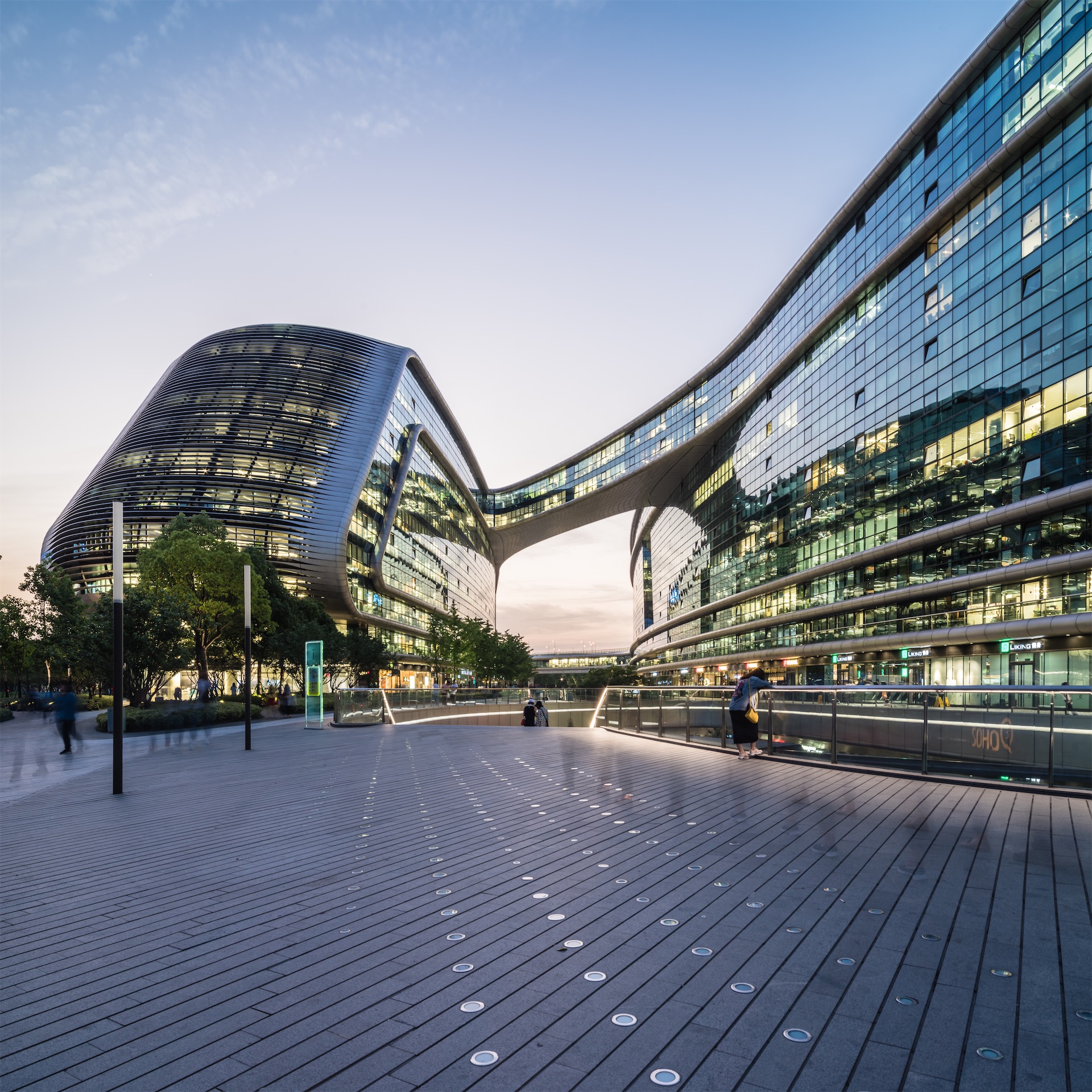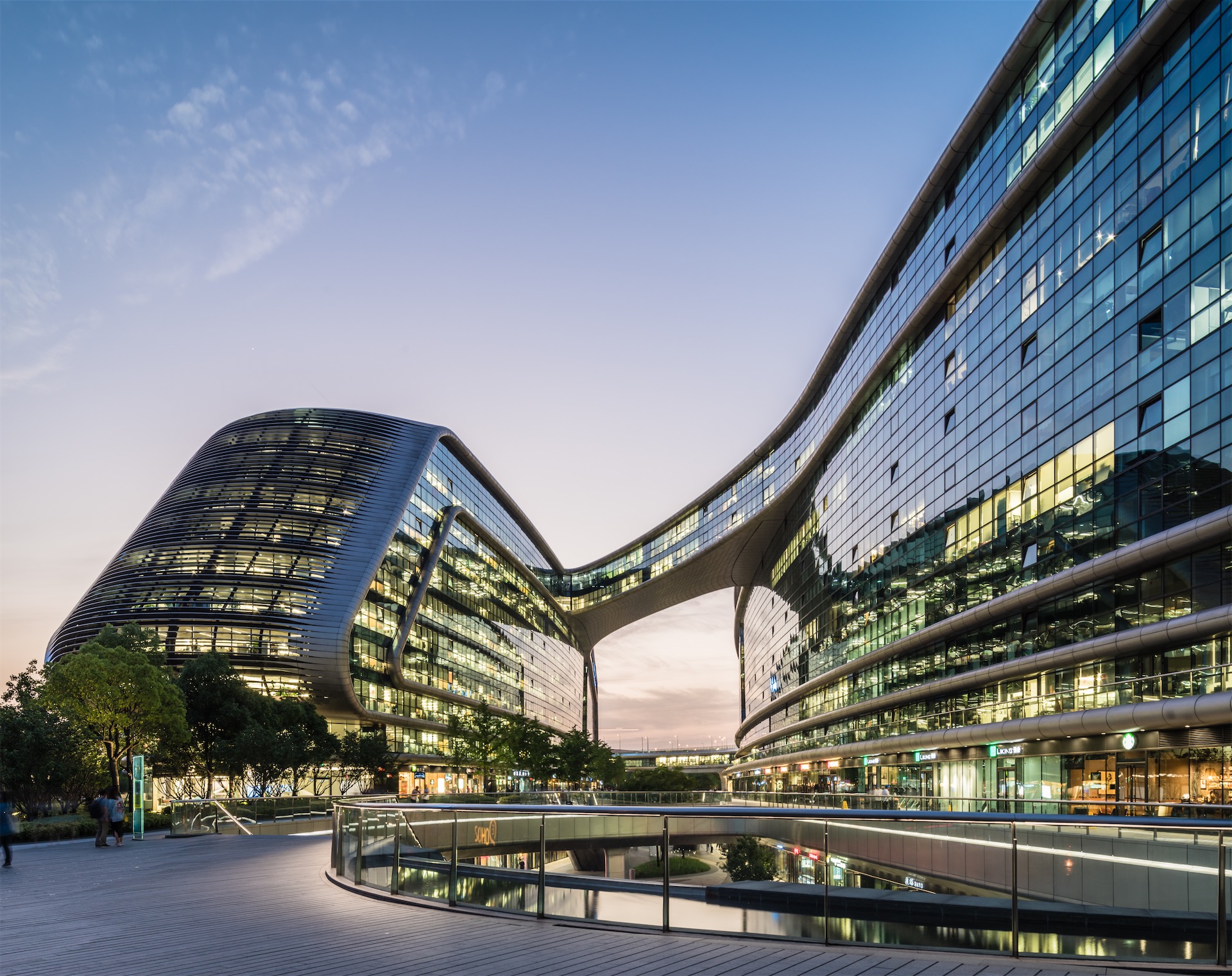 凌空SOHO项目位于上海临空经济园区,由5栋40m以下商业、办公综合性建筑组成,包括办公、商业、餐饮、影厅等功能。