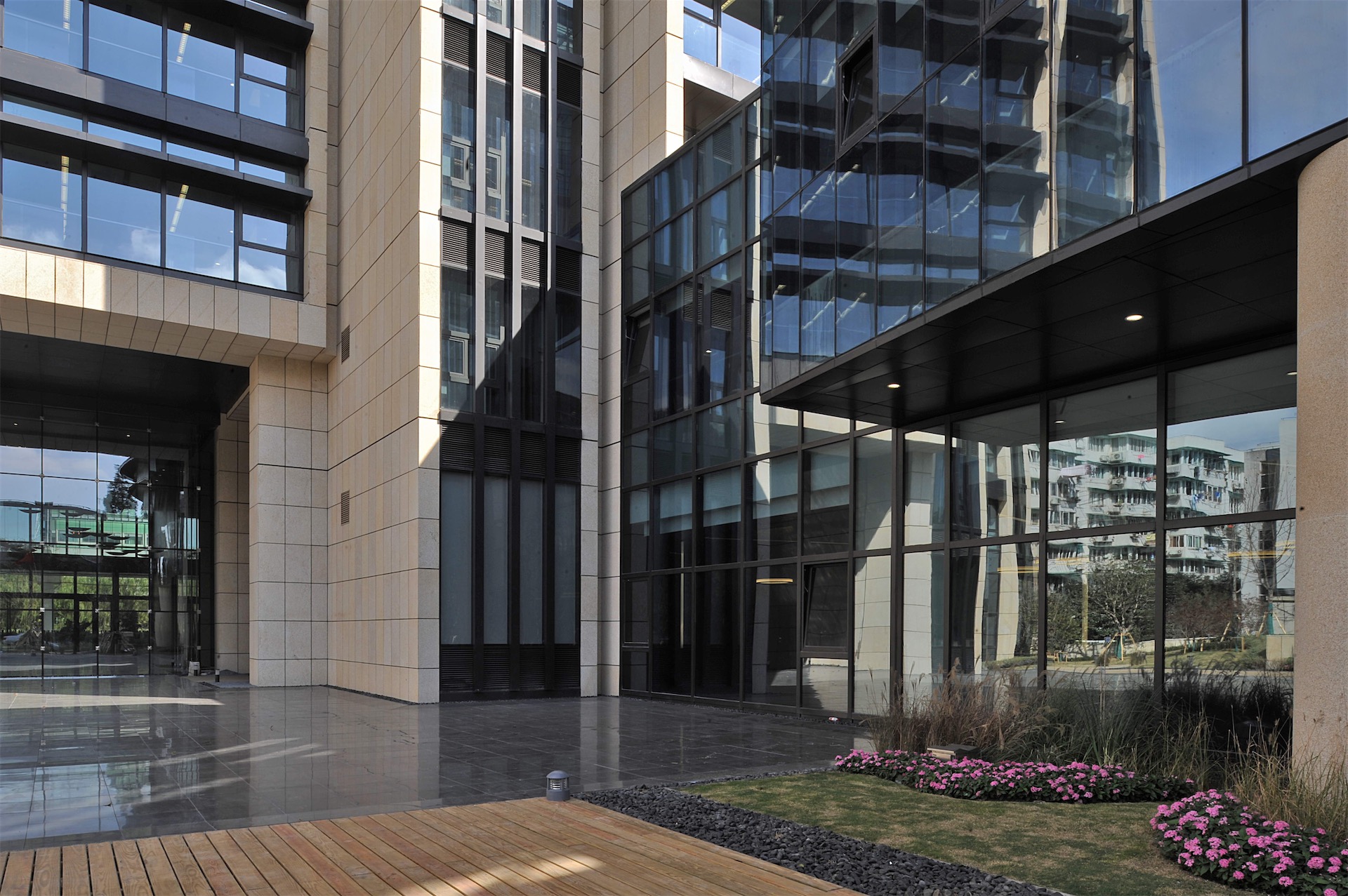 上海市政设计集团办公楼改扩建项目位于上海市中山北路南侧,四平路西侧,国康路北侧。本项目采用了多种绿色生态技术,创建了一个生态、绿色的现代化办公空间。