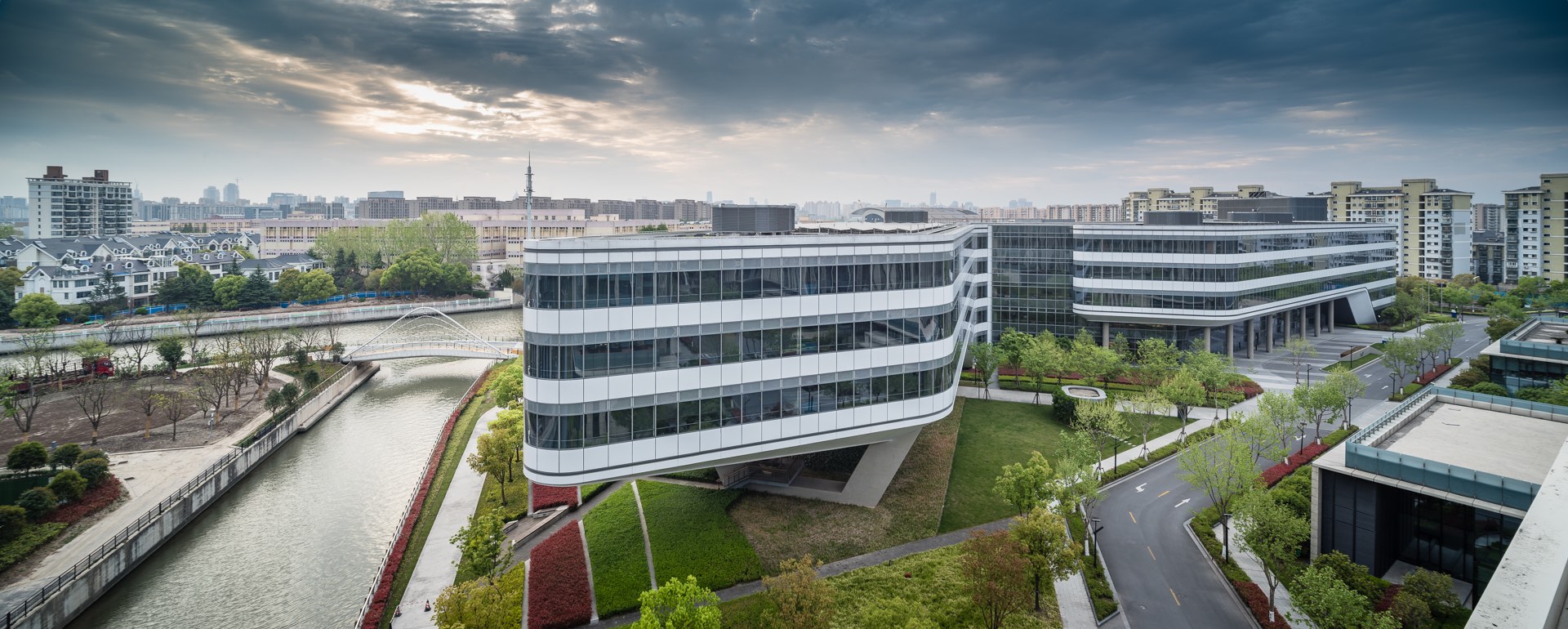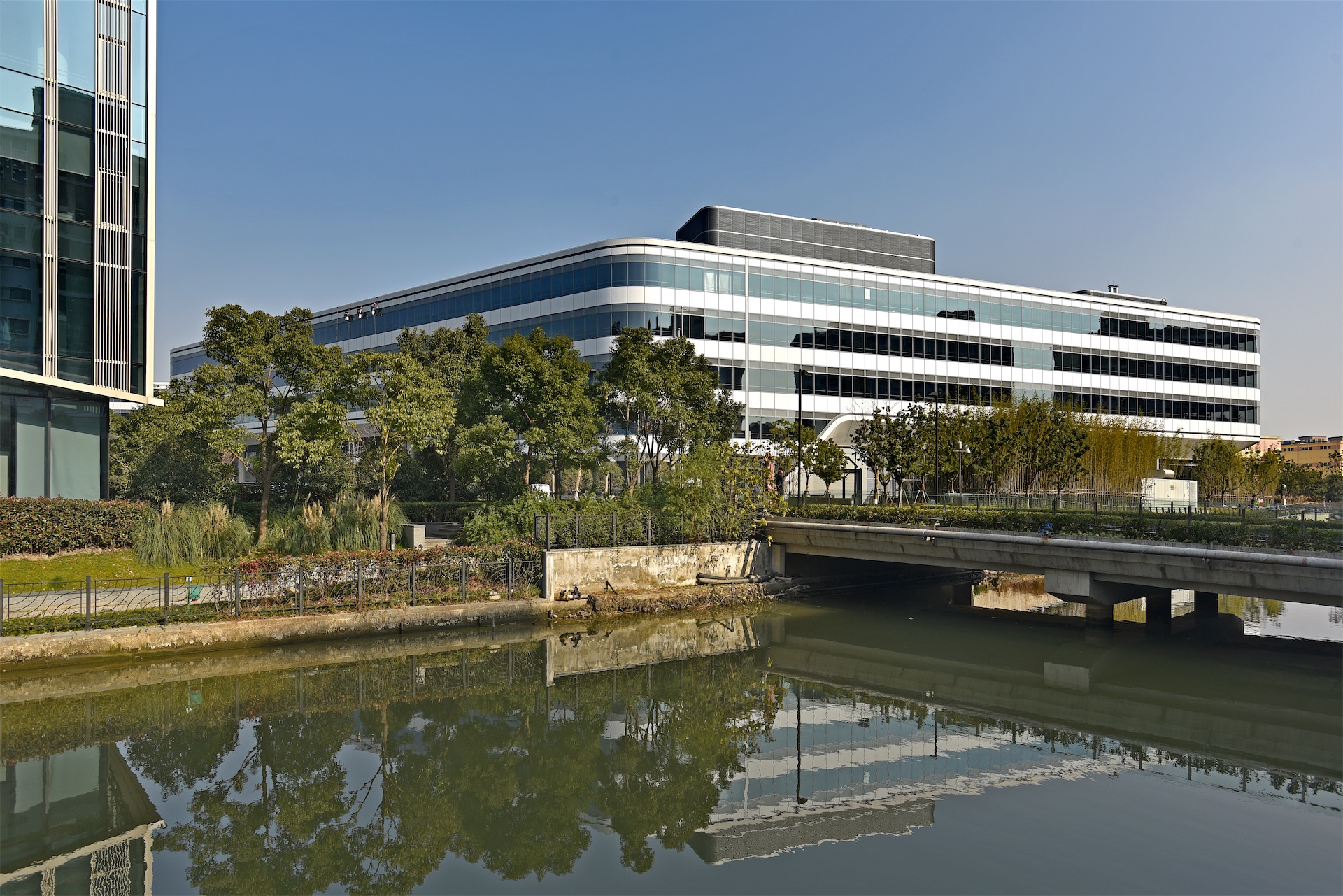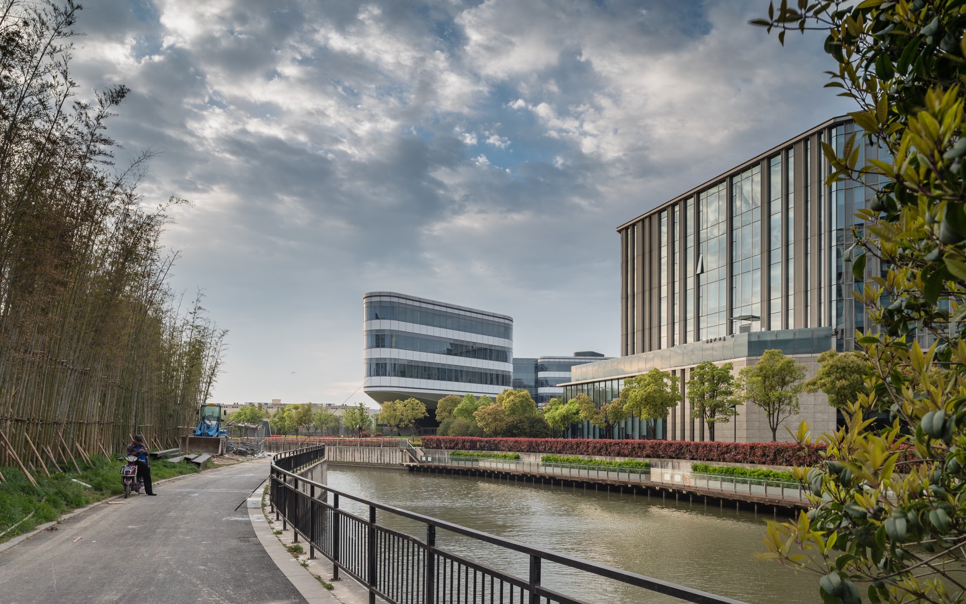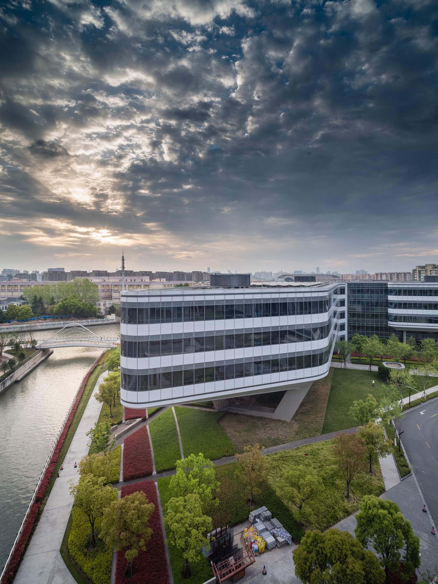 项目位于上海市长宁区虹桥商务区内,作为江森自控有限公司的新建中国总部大楼使用。基地紧邻苏州河,融入长宁区苏州河沿线景观改造带,水景、绿化、建筑在此完美结合。