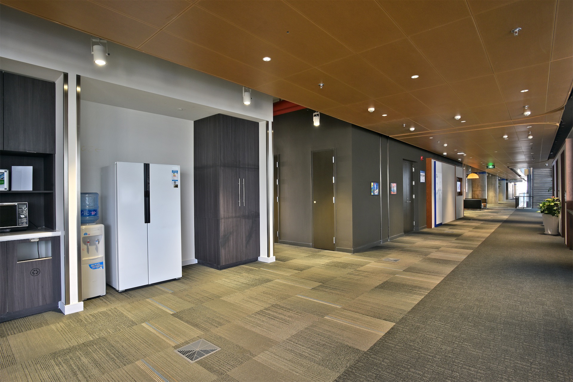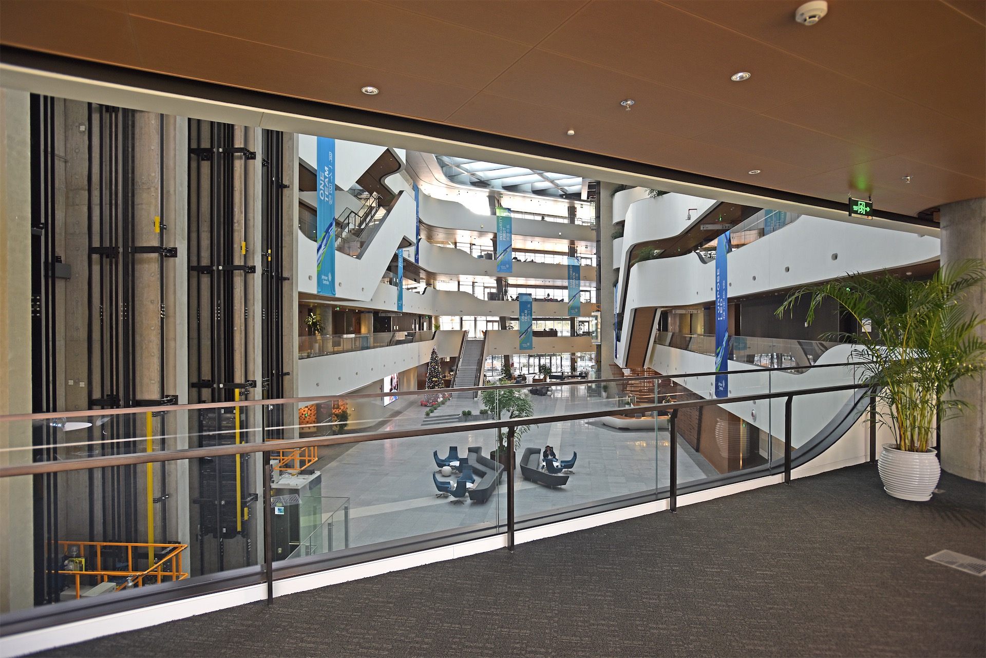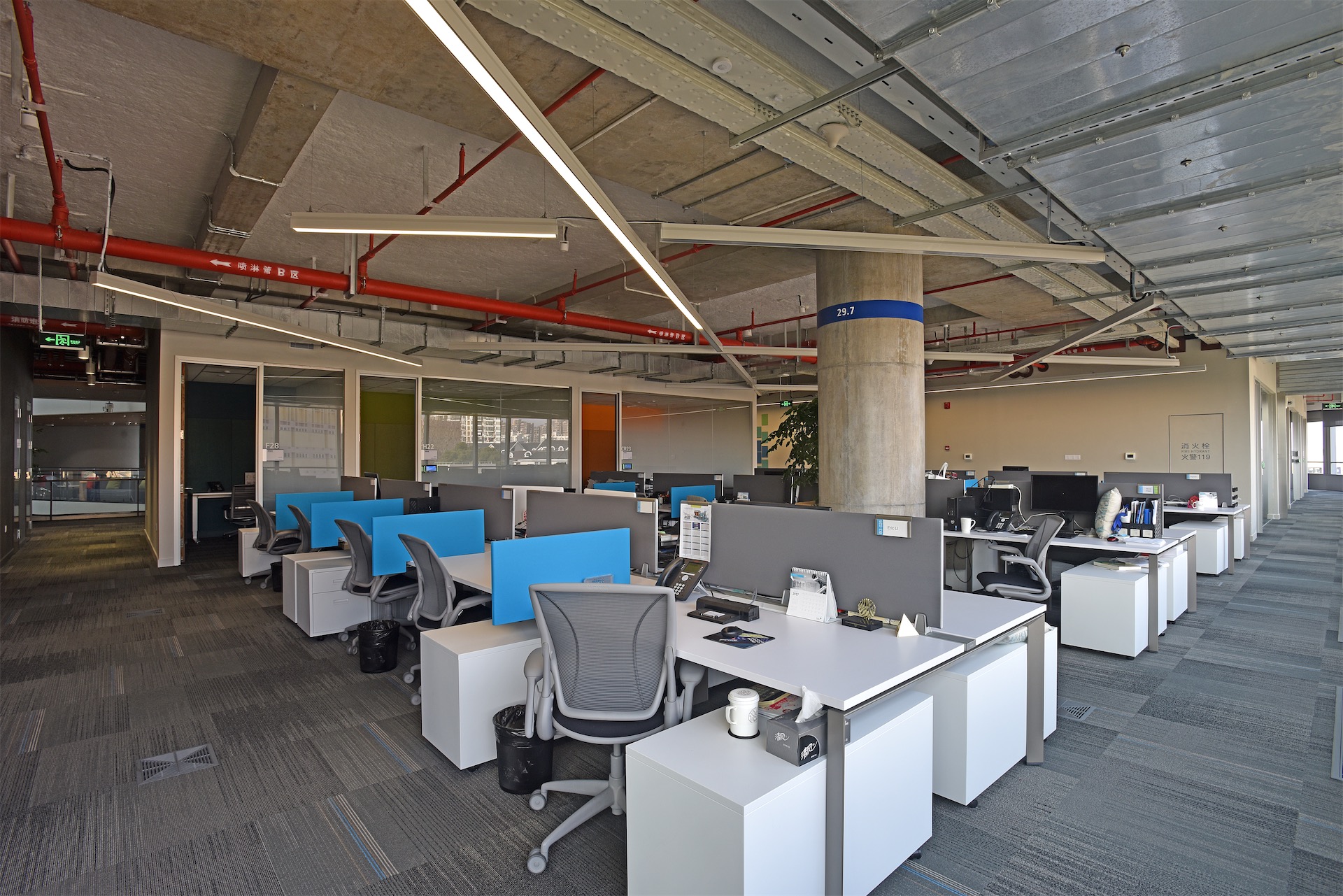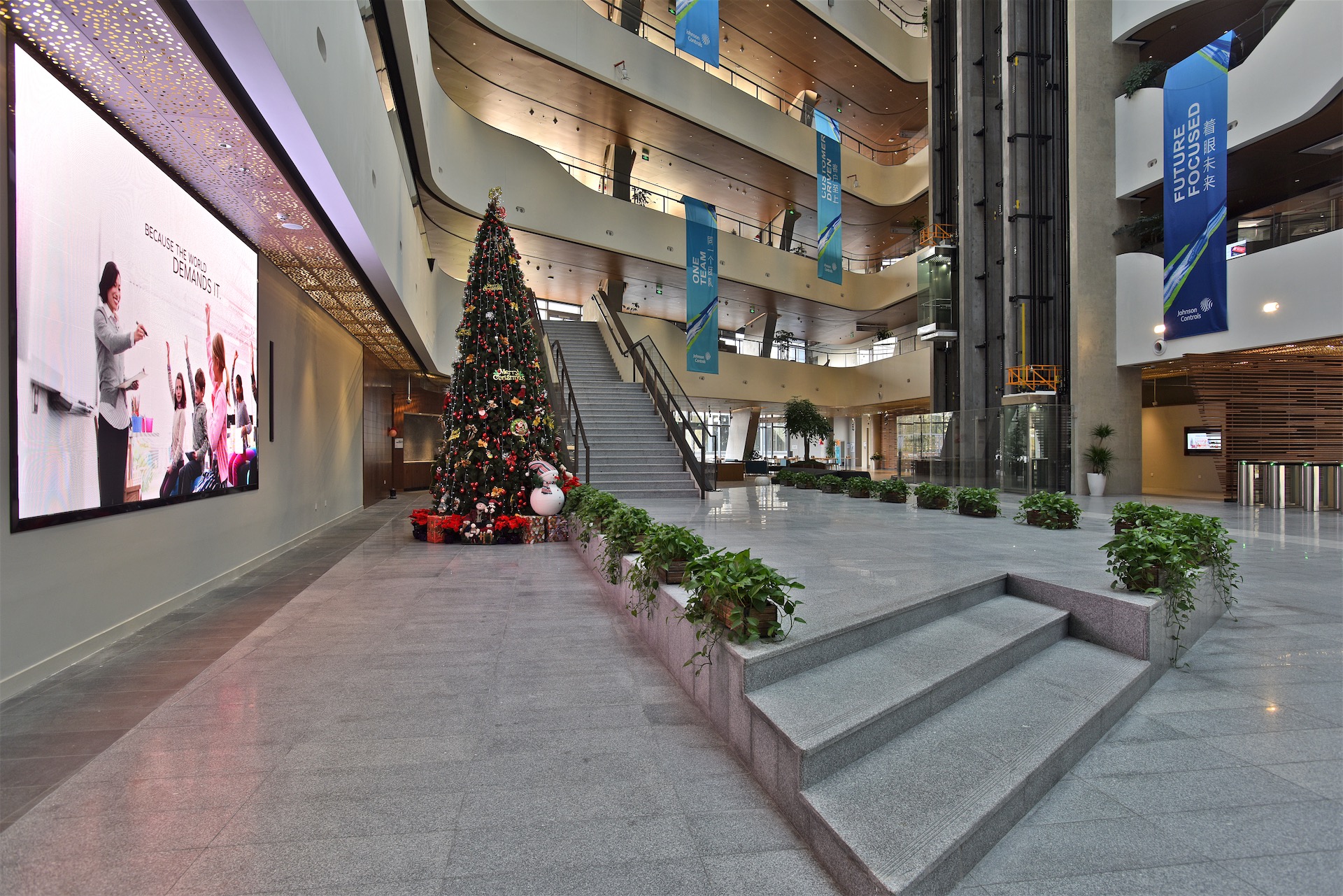 设计从最大限度的将自然景观引入建筑出发,同时确保江森自控的私密性和运营性不受影响。大楼设计为2栋狭窄的连续翼楼,中间为大型中庭。两座翼楼弯曲,最大限度地增加南北曝光面,使大楼产生一种双臂环拥的感觉,拥抱中心处社区枢纽中庭。