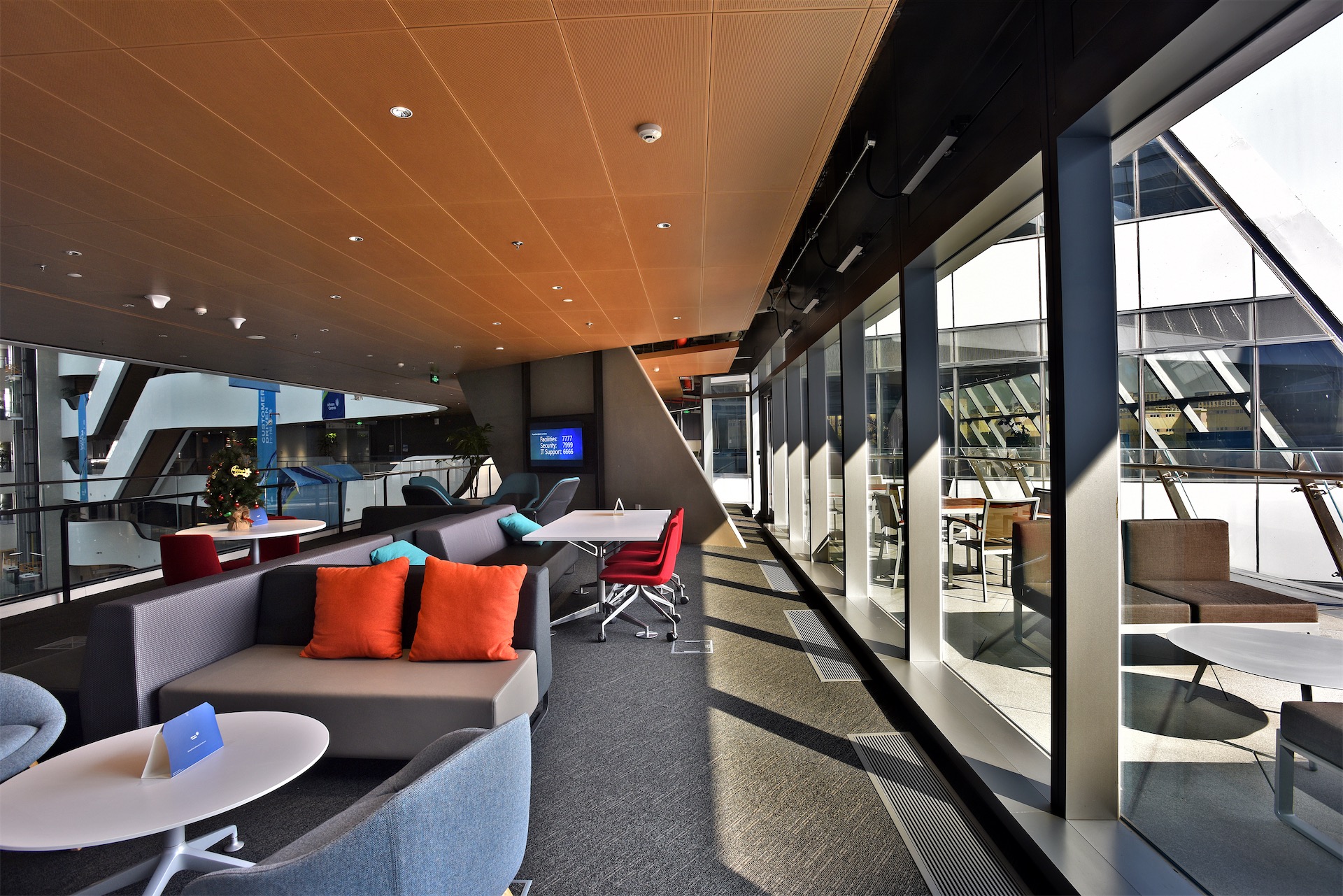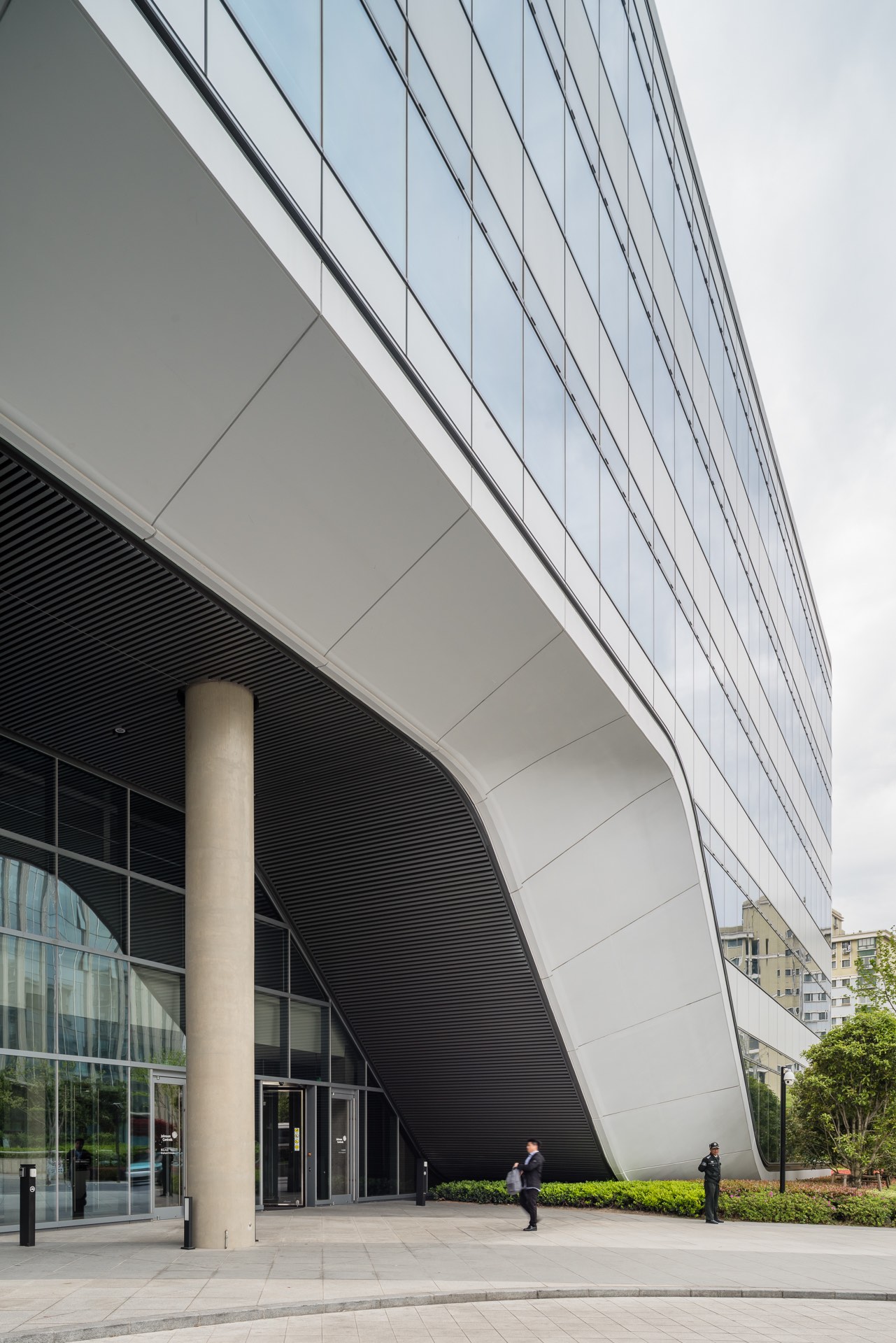 建筑立面以简洁流畅为原则,尤其是两翼汇集在一起和翼尾挑空的方式,极具当代气息的设计感。斜面的幕墙造型和大片的露台及屋顶花园则将建筑与苏州河绿带完全融在一起。