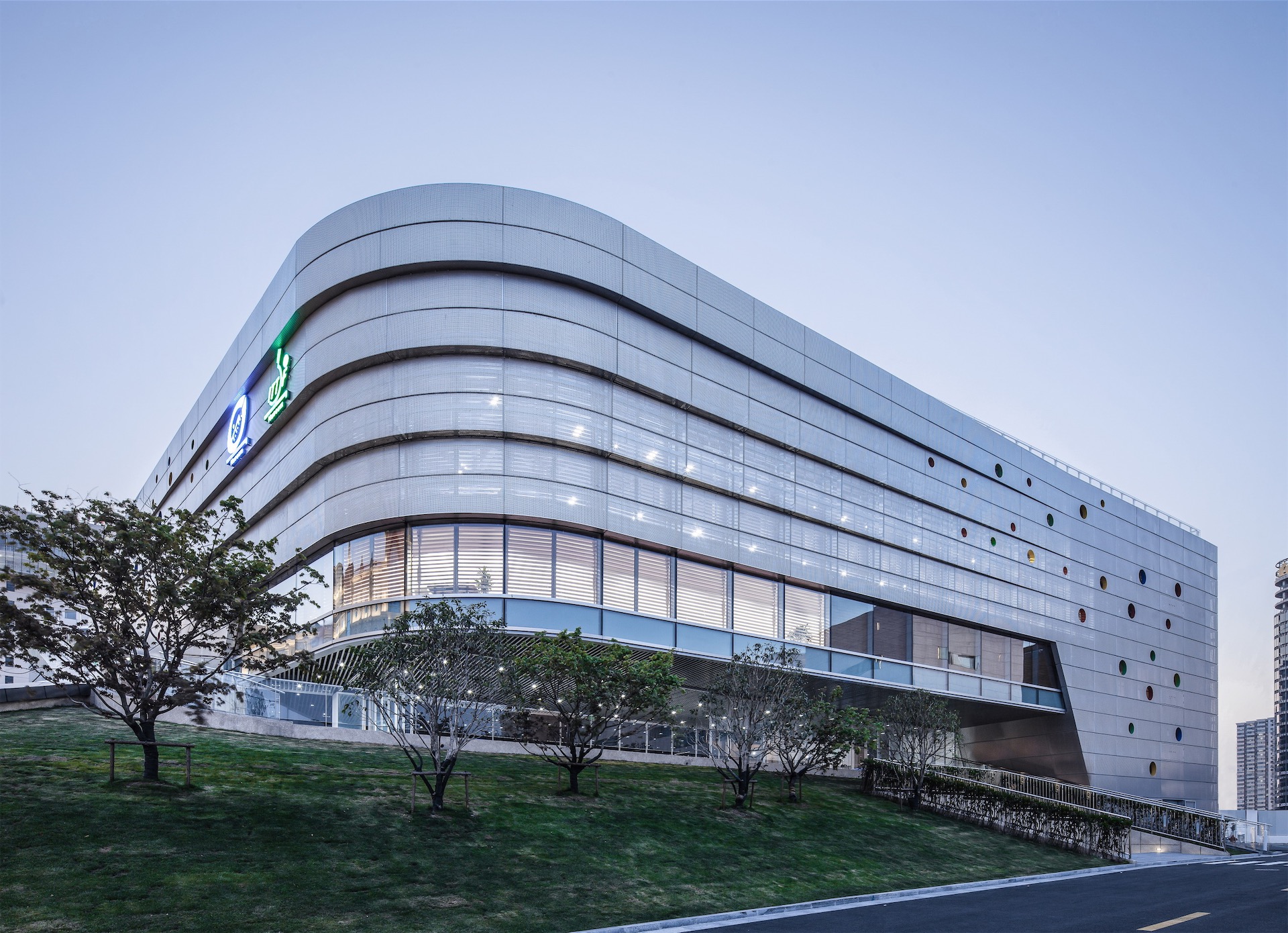 建筑着重于融于城市环境,地面绿化与建筑屋顶绿化相连。新建乒乓球博物馆的形体概念通过折叠的设计策略,把单一水平向的空间形态,立体叠合展开,在形态上旋转攀升而上,象征着乒乓精神力量。在逐层攀升而上的过程中,市民的城市生活和公共活动在这里展开。户外乒乓体验、市民乒乓讲堂、屋面休闲公园、乒乓名人足迹等通过折叠,原来单一有限的地面公共活动被立体拓展到多个屋面层,形成一个立体展示全民乒乓运动的魅力舞台。