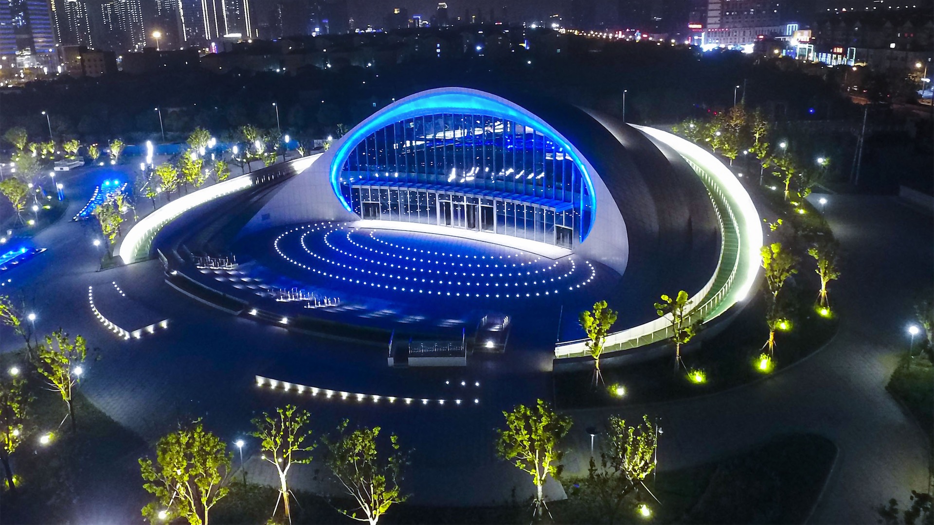 建筑空间设计通过展示体验馆的下沉展场、自行车馆室外入口广场、展示馆的三个室外主题表演展示空间,以及滨水城市休闲景观带,形成丰富的室外空间,同时结合其地景式的建筑形体以及内部展示功能,形成地面、地上、地下多维度、多层次的室内外空间互动,使建筑空间最大化实现功能与城市的载体作用。
