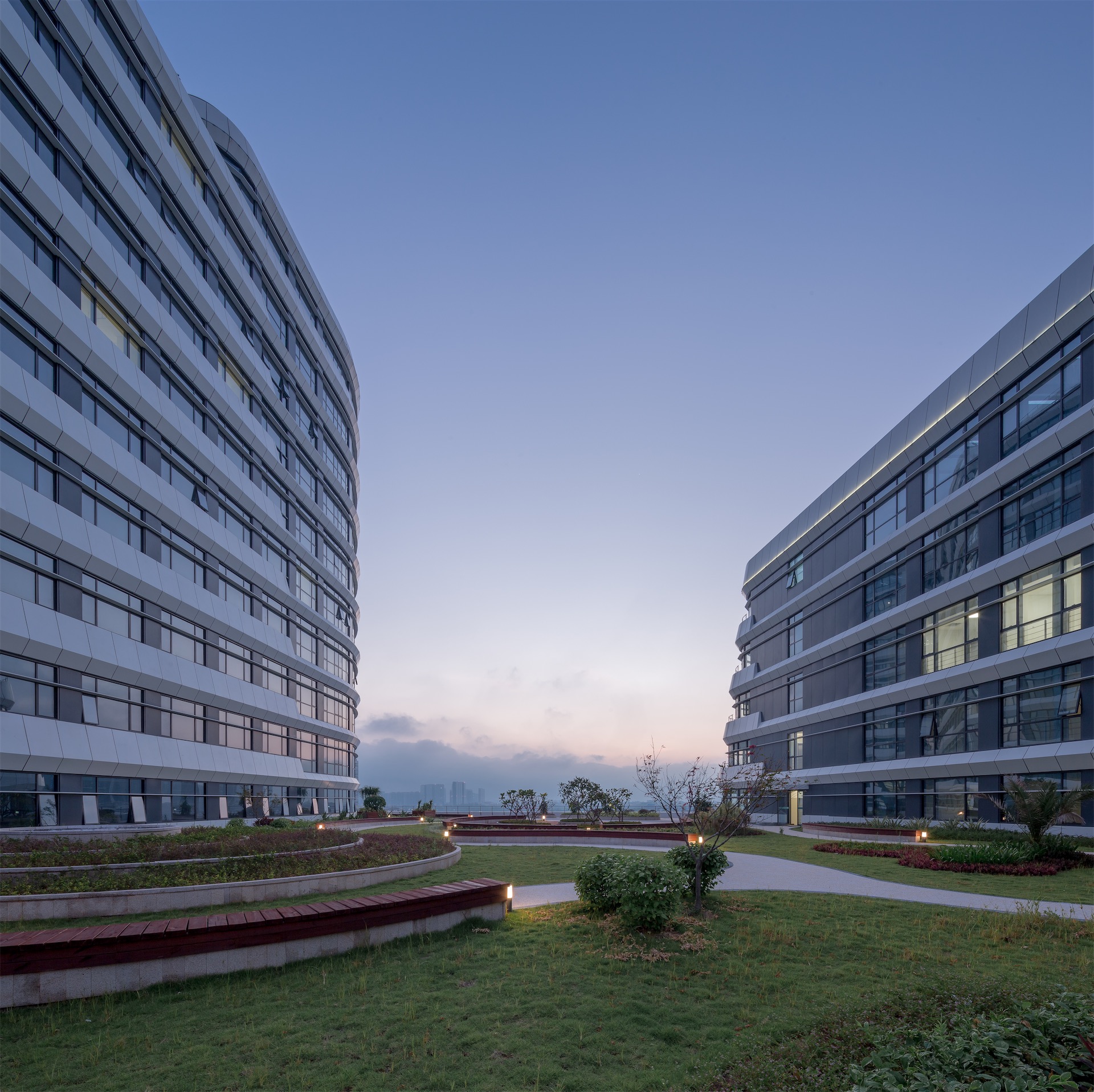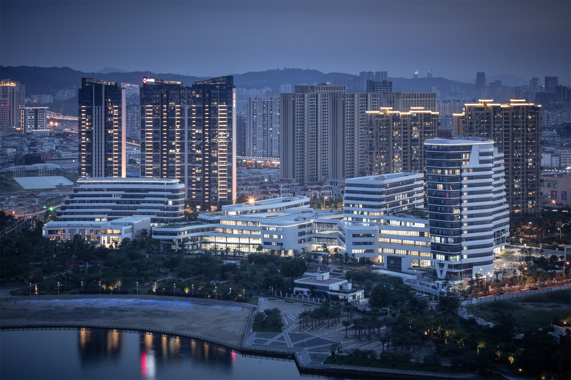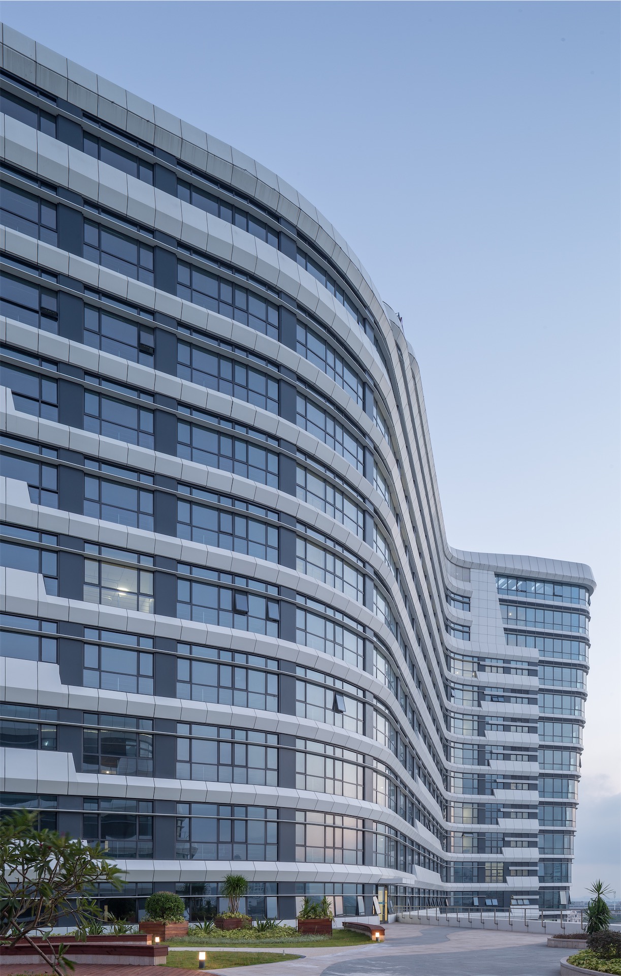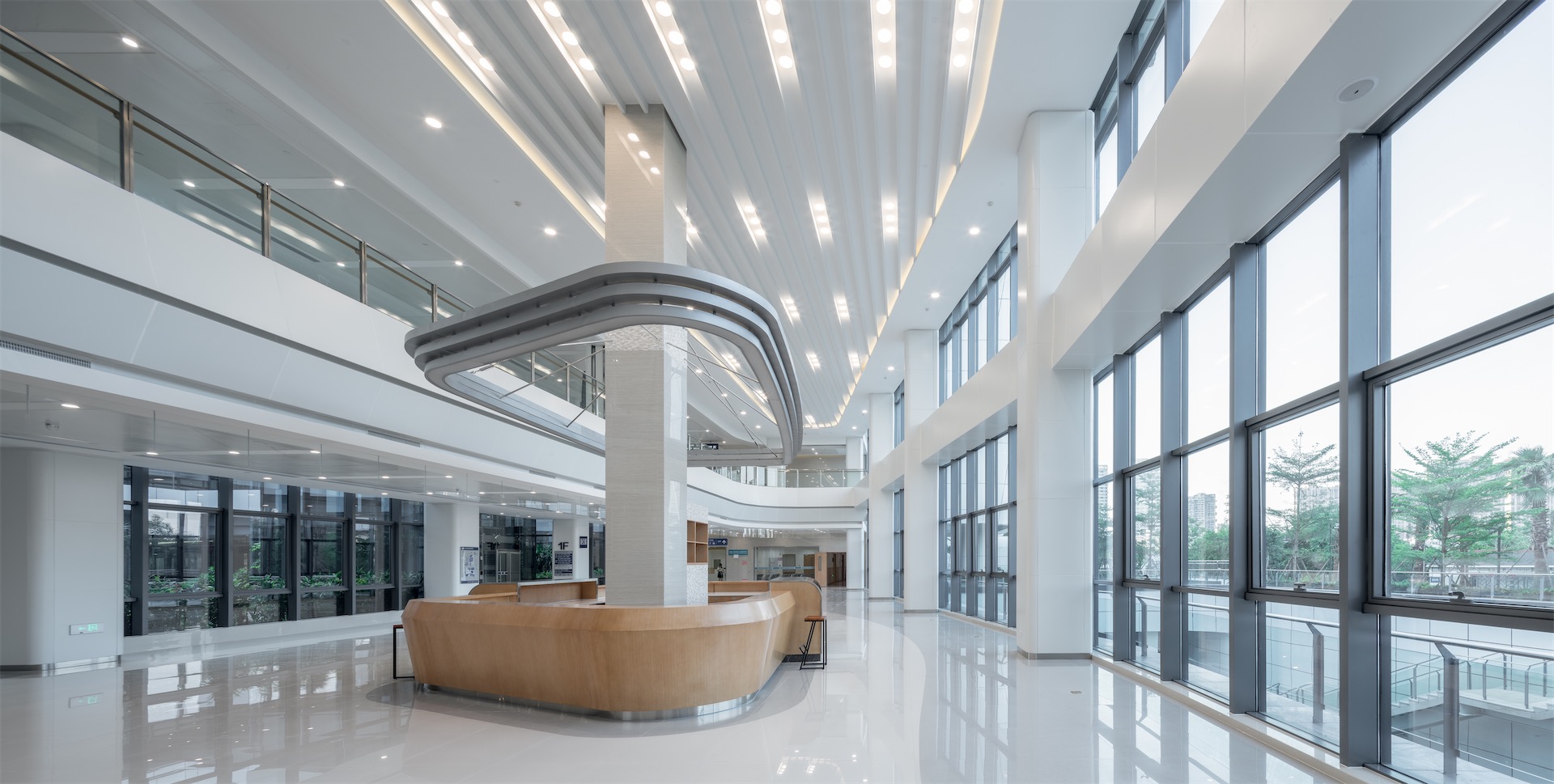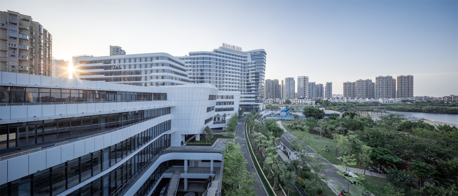 因借五缘湾特有的景观资源和环境资源,以流线型的建筑走势遵从海湾地区的城市肌理,使其不仅是一座观景的建筑,更成为五缘湾卓越景观的一部分。采用高效的医疗功能布局、立体的交通体系和便捷的智能化系统,并以人性化的室内形象和多层次的绿化系统,提供患者全新的就医体验。