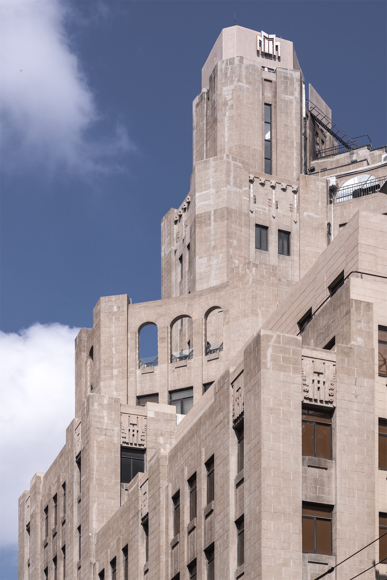 本次工程以真实性原则为前提,复原了主入口雨篷、入口两侧历史铜饰石饰构件、建筑檐部水刷石装饰纹样等Art Deco风格外墙特色装饰细部。同时尊重保护要求、置入合理功能,修缮复原了地下酒吧间、一层紫来厅等重点保护空间。此外,为整体提升历史建筑的安全舒适度,在保护为先、安全为重的原则下,增配消防设施、更新机电系统。
