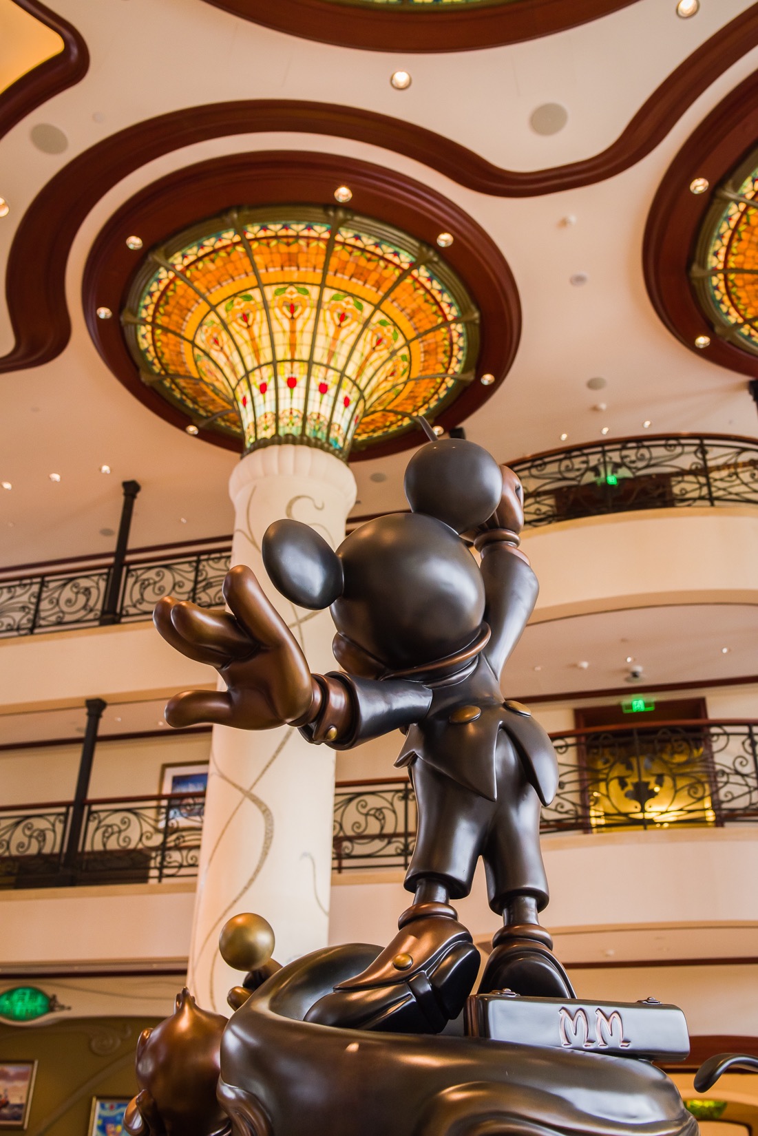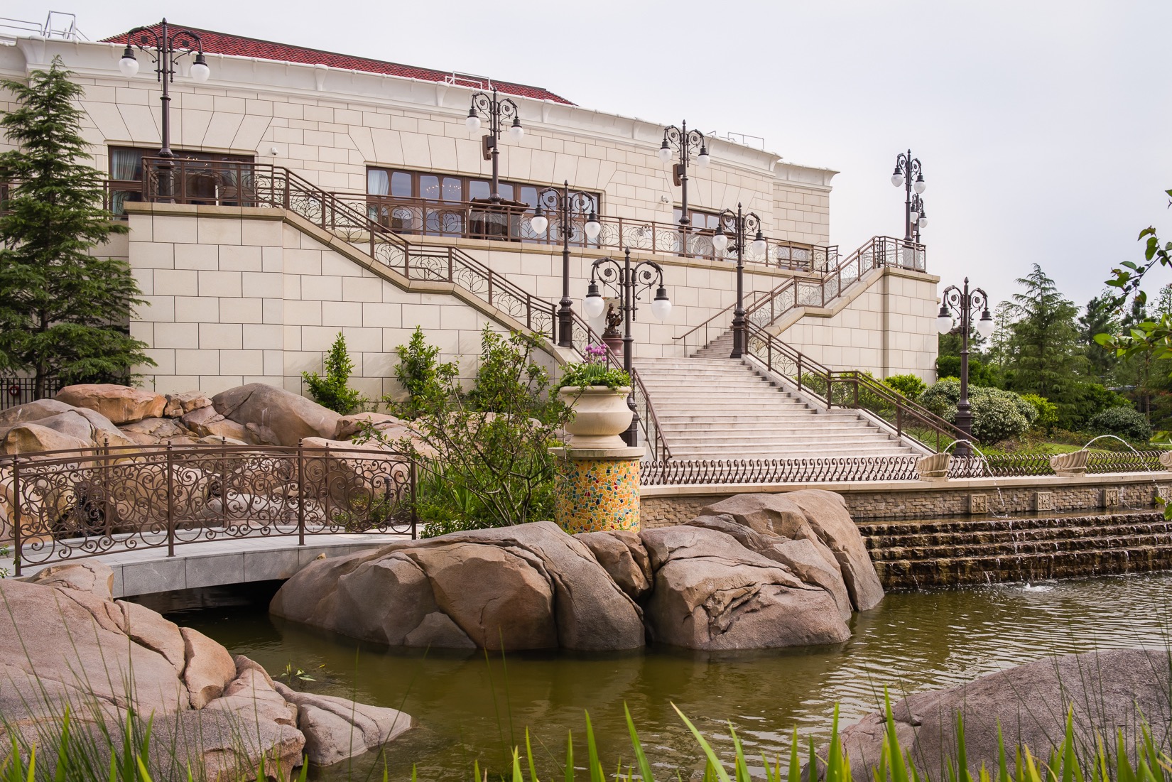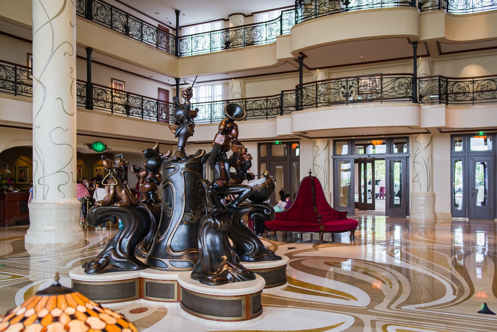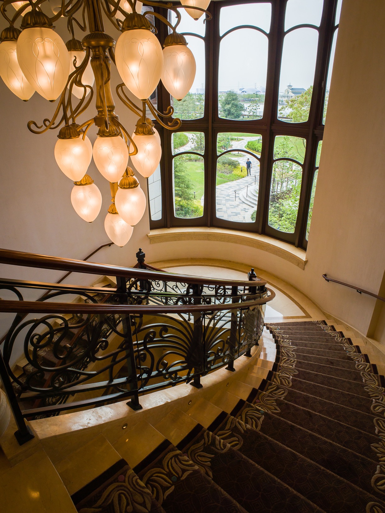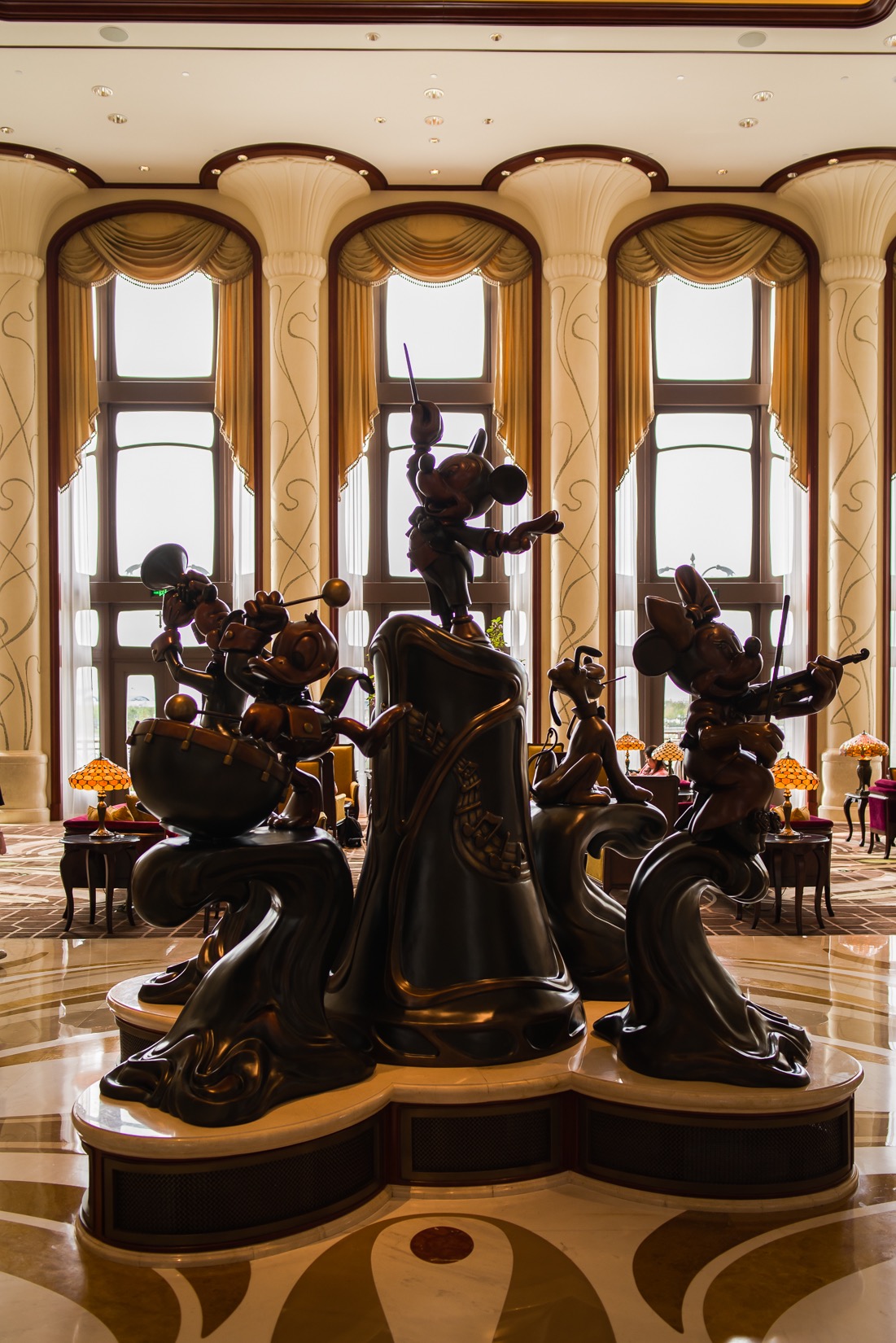 本项目旨在创造充满迷人活力的建筑空间,整个酒店设计糅合了十九世纪新艺术主义建筑风格以及同时期在法国盛行的艺术传统,主题明确、造型独特,建筑室内外设计都充满着优美的童话特色,建筑以这种独特的方式陈述着迪士尼文化的丰富内容。建筑立面是从两翼客房逐层退台并逐渐往酒店中心升高的塔楼造型,观景平台上部的装饰性构架和塔楼等造型元素有灯光映衬,从湖泊对岸观看在视觉上呈现为一个大型灯笼,制造出中央皇冠璀璨闪耀的效果。美国迪士尼文化远渡重洋来到中国扎根发展,同时也注重与本土文化的沟通交融,顶部的灯笼造型是从中国传统形象中提炼而成的。