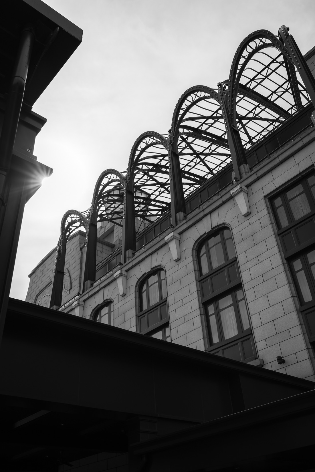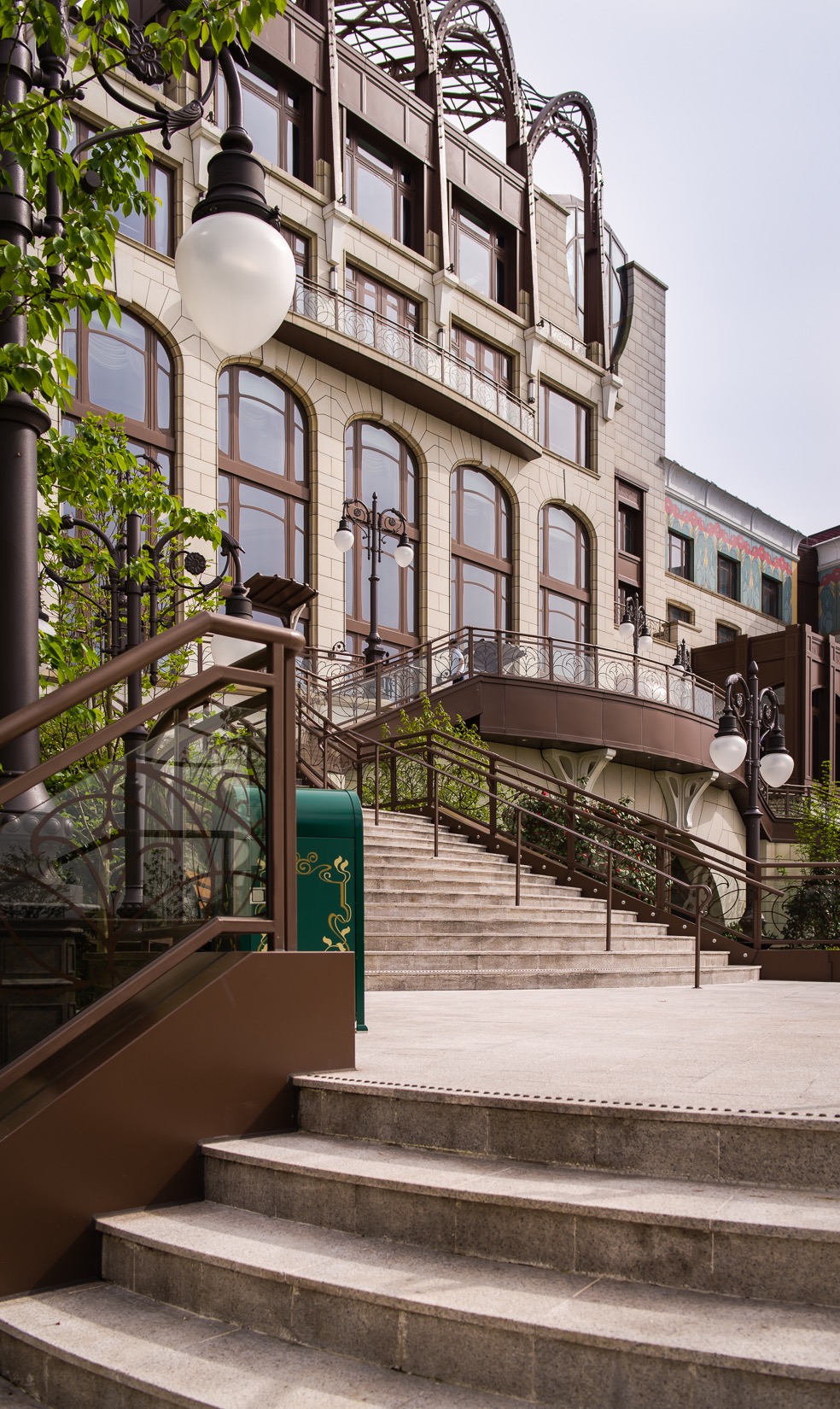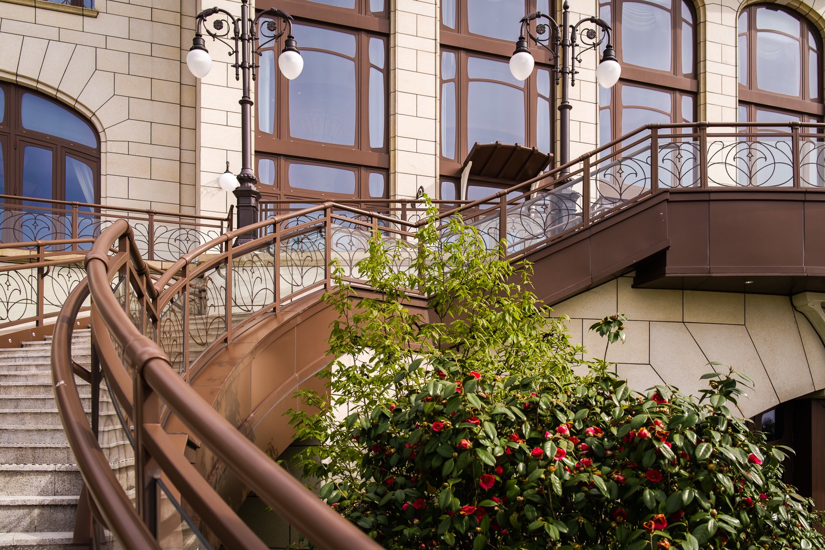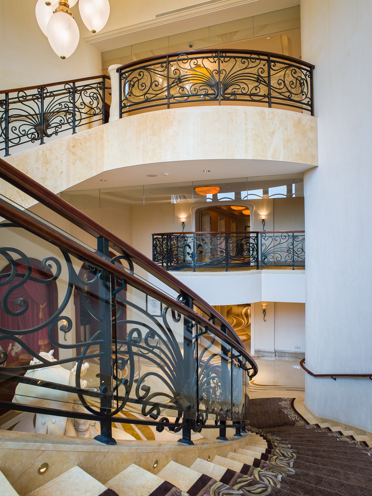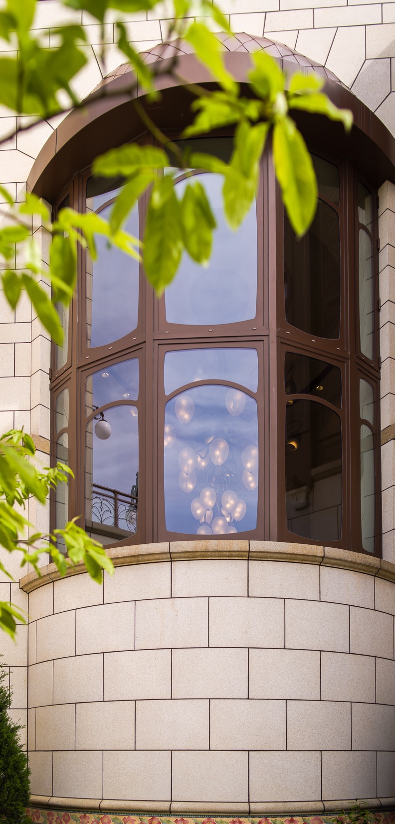 本项目旨在创造充满迷人活力的建筑空间,整个酒店设计糅合了十九世纪新艺术主义建筑风格以及同时期在法国盛行的艺术传统,主题明确、造型独特,建筑室内外设计都充满着优美的童话特色,建筑以这种独特的方式陈述着迪士尼文化的丰富内容。建筑立面是从两翼客房逐层退台并逐渐往酒店中心升高的塔楼造型,观景平台上部的装饰性构架和塔楼等造型元素有灯光映衬,从湖泊对岸观看在视觉上呈现为一个大型灯笼,制造出中央皇冠璀璨闪耀的效果。美国迪士尼文化远渡重洋来到中国扎根发展,同时也注重与本土文化的沟通交融,顶部的灯笼造型是从中国传统形象中提炼而成的。