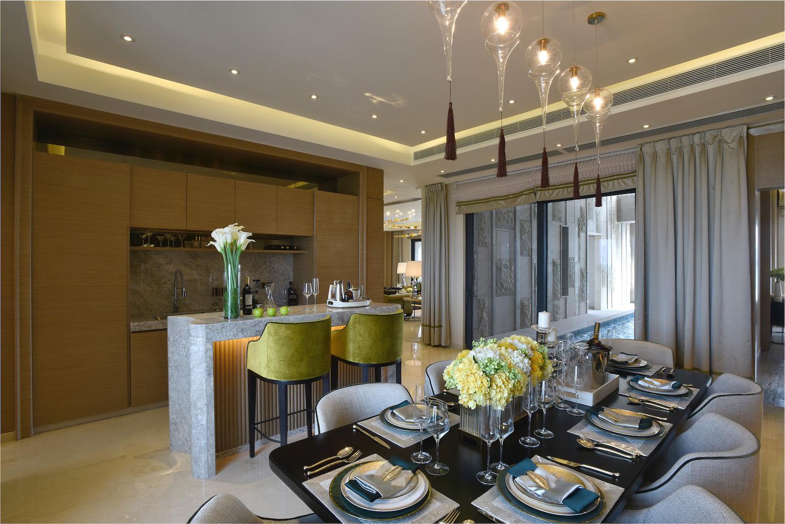 项目设计充分考虑上海的气候特征, 单体建筑超簿板设计,大面宽小进深,采光充足,主要的户型为180-250平米的大平层公寓设计,3.15米层高配以8米面宽的客厅,使豪宅的尺度感体现的淋漓尽致;充分考虑人性化的生活方式,功能配套完善舒适,注重内部住宅空间的实用性、舒适性。
