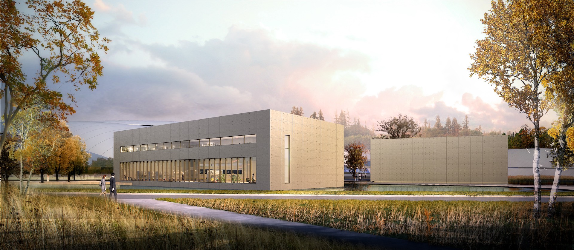 项目遵循园区“外方内圆”的设计原则,用低调简约的建筑形体衬托园区内已建、在建和即将新建建筑群,使其和谐完整。结合本项目的实际使用性质,去繁从简,以提高空间使用率、获取良好视觉效果的简洁方正的建筑体形,获得建筑最本质的元素。