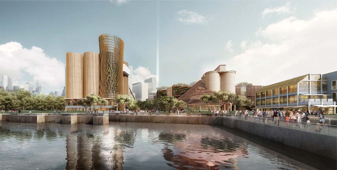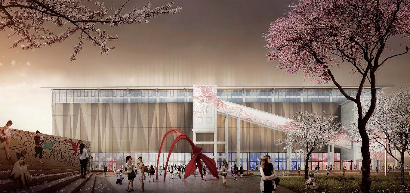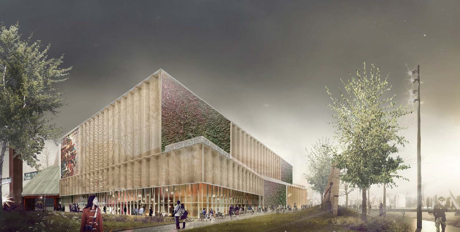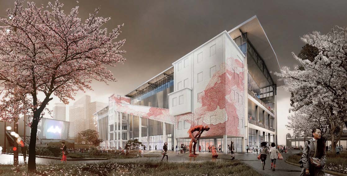 梦中心B地块项目座落于上海市徐汇区黄浦江滨江区域,位于西岸传媒港开发的九个地块的东侧,是集文化、娱乐、观演、展示为一体的综合文化建筑群。