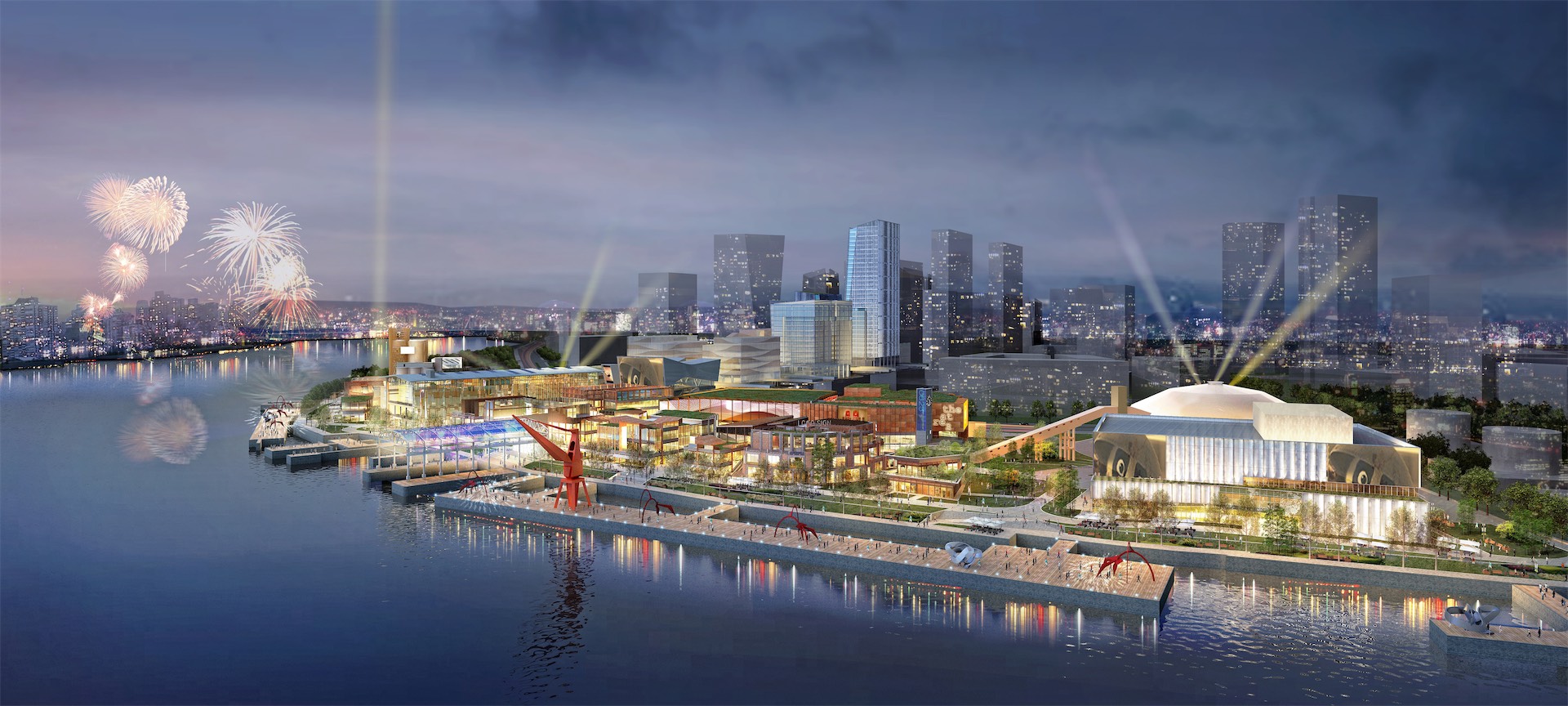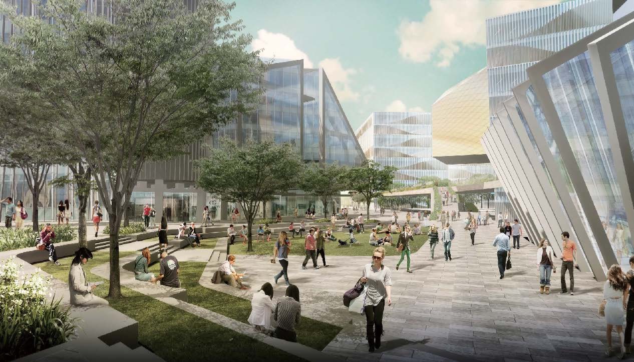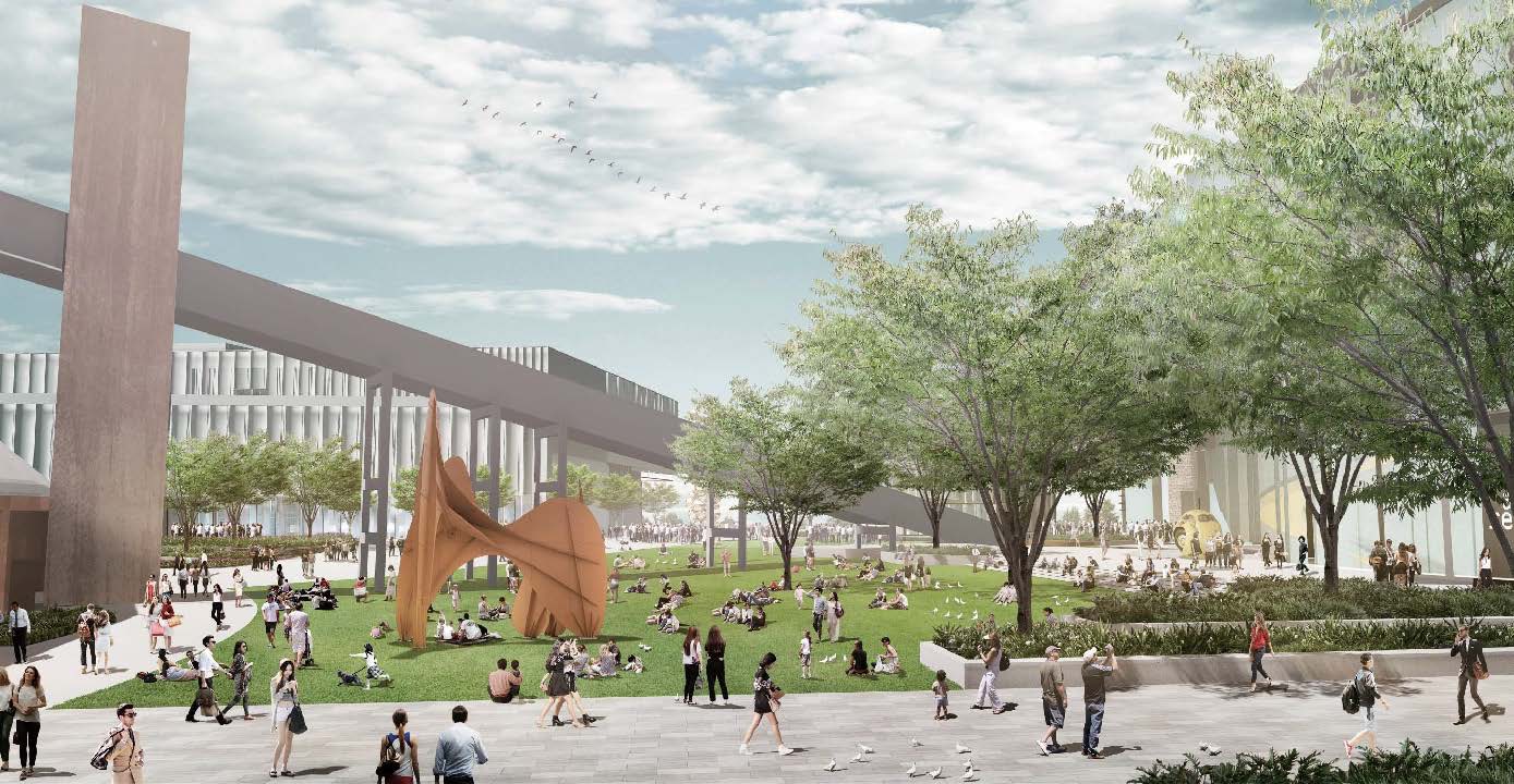 一条南北走向的林荫大道和滨水长廊形成了地块内部的主要流通环线,它同时连接了入口广场和活动广场及五个核心文化设施——梦想巨蛋、梦剧场、第二剧场、音乐厅和艺术与设计中心。从林荫大道分支出来的街道和巷道,可以到达不同的庭院、小广场和露台,从而体验不同文化场所。