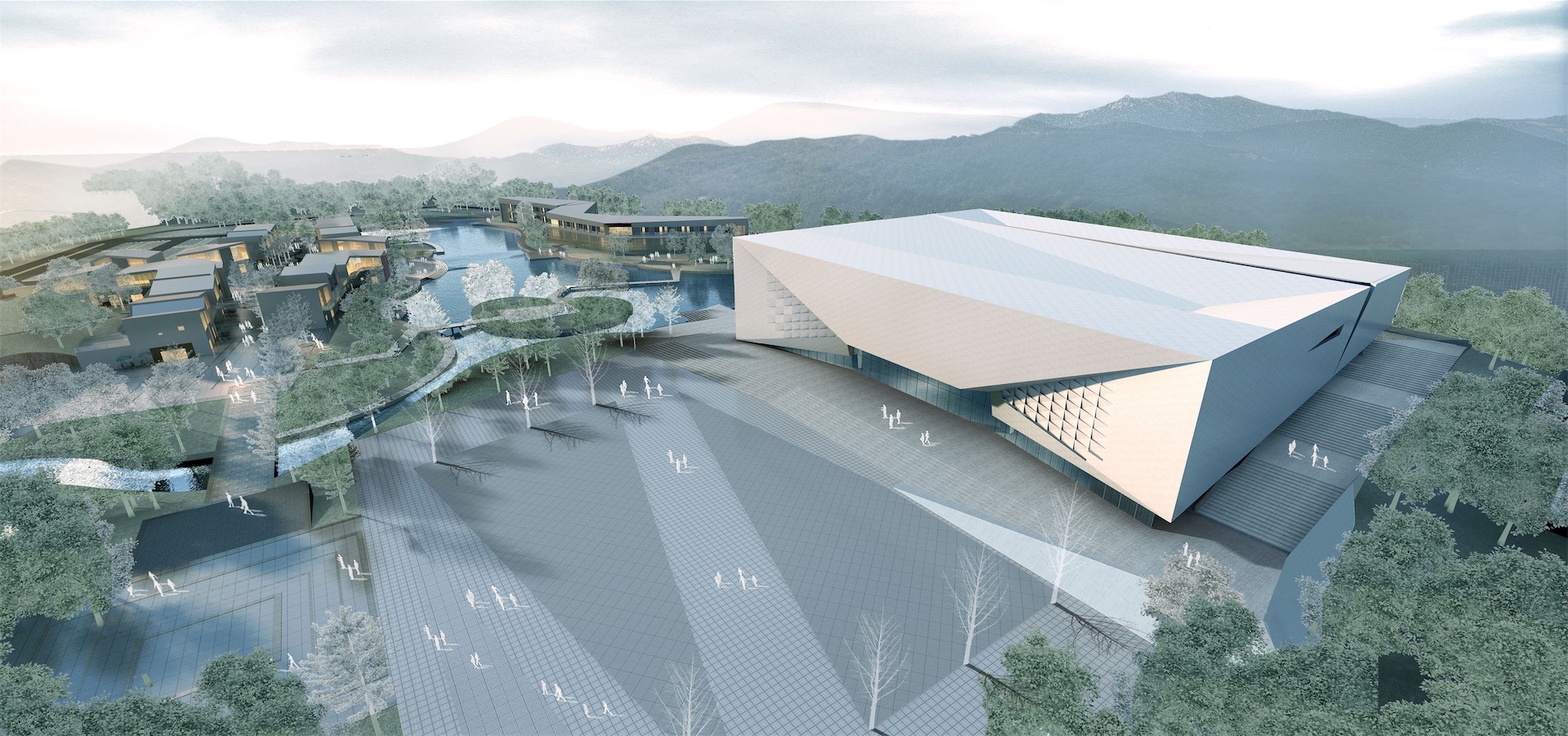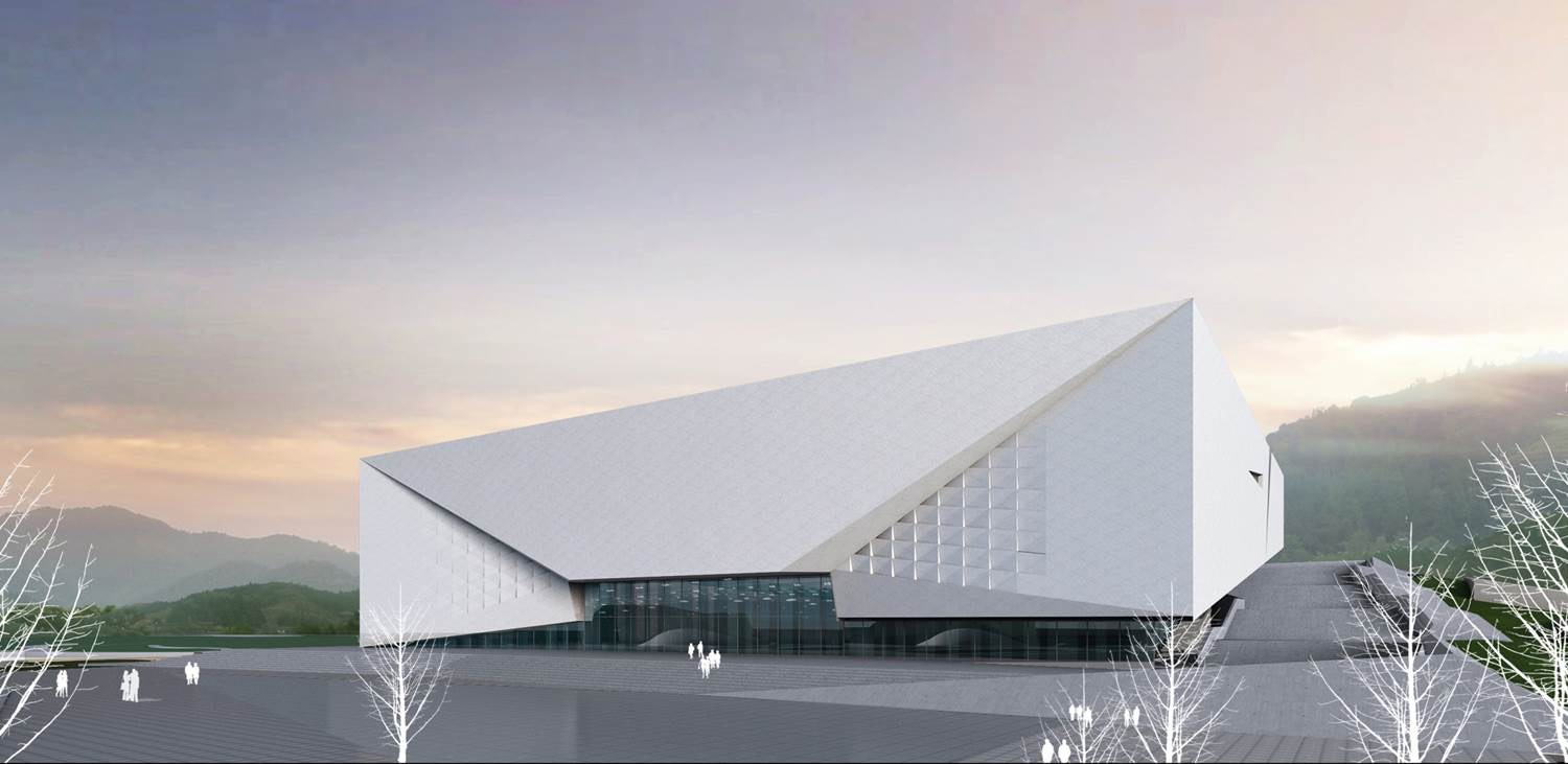 项目位于大余县黄龙镇丫山旅游风景区附近。纪念馆建筑犹如镶嵌在山水画卷的一块棱角分明的白岩,取之于环境又闪烁着它独有的标志性。