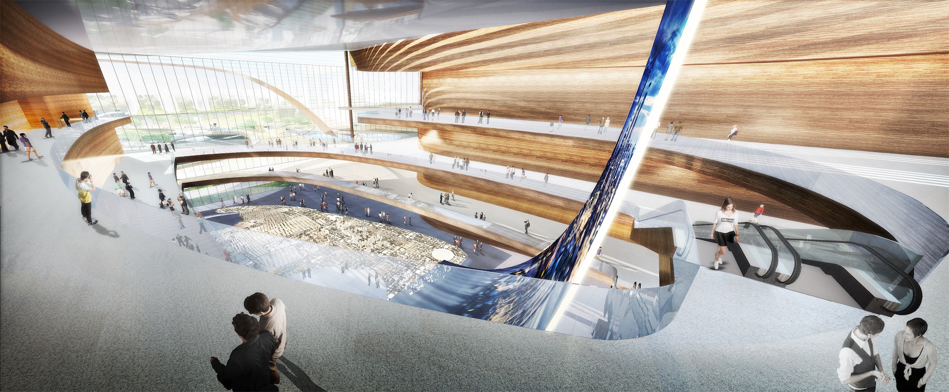 建筑设计概念为“承载着浦东城市梦想的未来礼物”,通过建筑空间和造型呈现出的多维流动感,带给市民对规划不断延续的情感体验。
