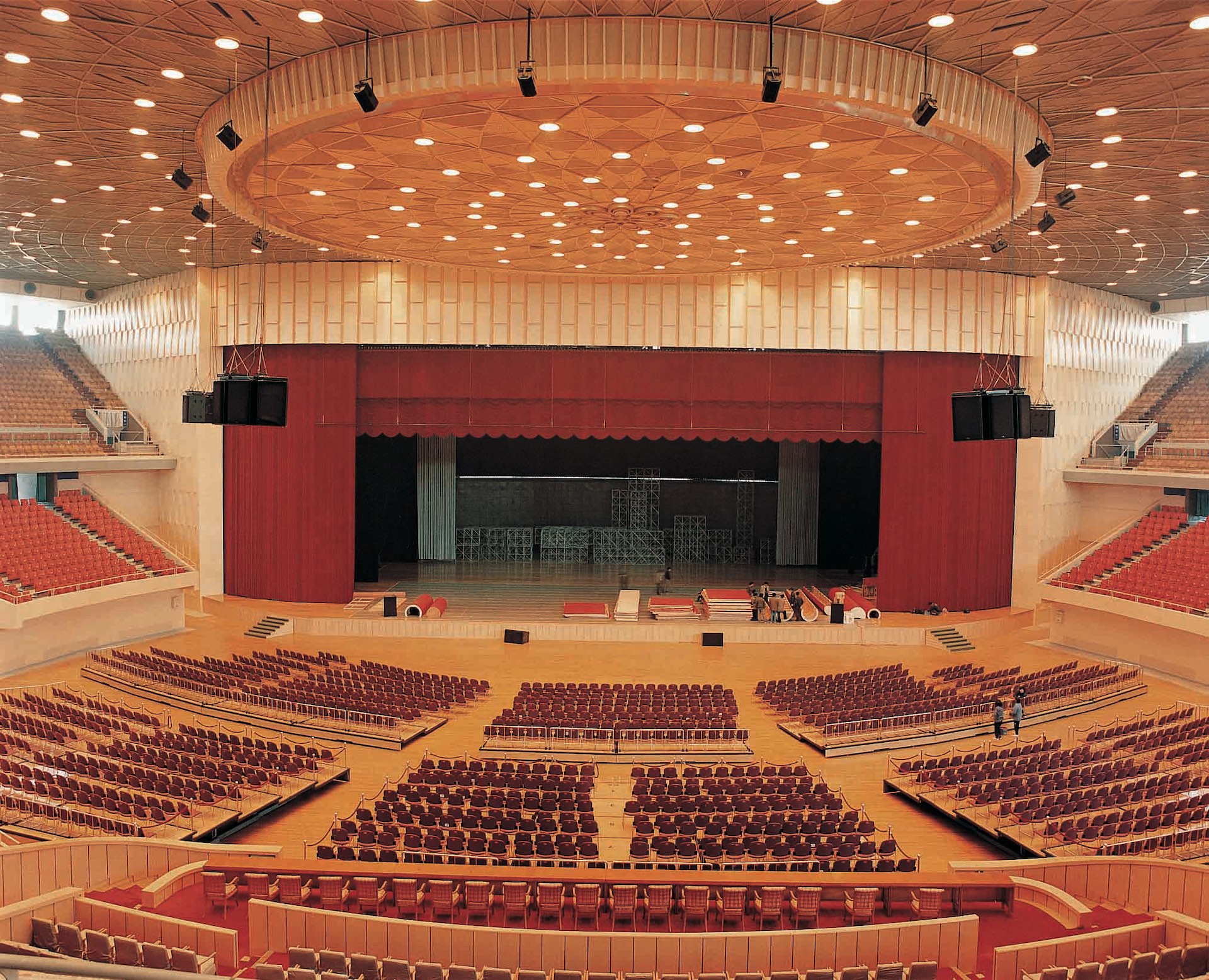 上海大舞台,座落在上海西南地区,著名的华亭宾馆对面,原名上海体育馆。上海体育馆是国内大型的体育馆之一,1975年建成使用。主馆呈圆形,高33米,屋顶网架跨度直径110米,可容纳观众18000人。上海大舞台是在上海体育馆保留原体育馆功能的基础上于1999年10月改建而成的。大舞台分为上、下两层结构,舞台平面呈橄榄型,舞台左右两端最大有效使用距离60米,前后最大纵深32米,舞台面积约1250平方米。大型文艺演出可容纳观众8000 10000人左右,体育比赛可容纳观众12000人。同时,可举行5000 10000人大型会议,2000 5000人左右的中型会议,也可举行几百人的小型会议,是国内首家剧院式多功能大型室内体育馆。大舞台台框(有幕)高16米,宽28至42米(有侧幕作调节),在舞台中央有7组共300平方米的大型机械舞台,该机械舞台的精巧构成加上完备的配套设施为各类大型活动营造不同的舞台效果提供了基本的保证和想象空间。上海大舞台工作人员具有丰富的大型体育赛事和演出活动工作经验,将为合作方提供标准、专业的一流服务。