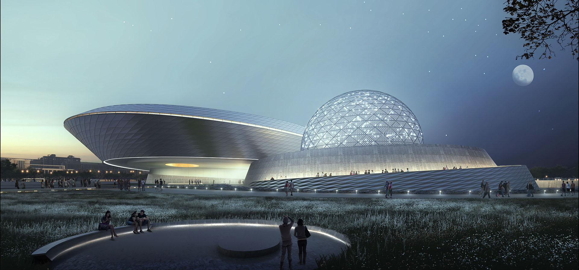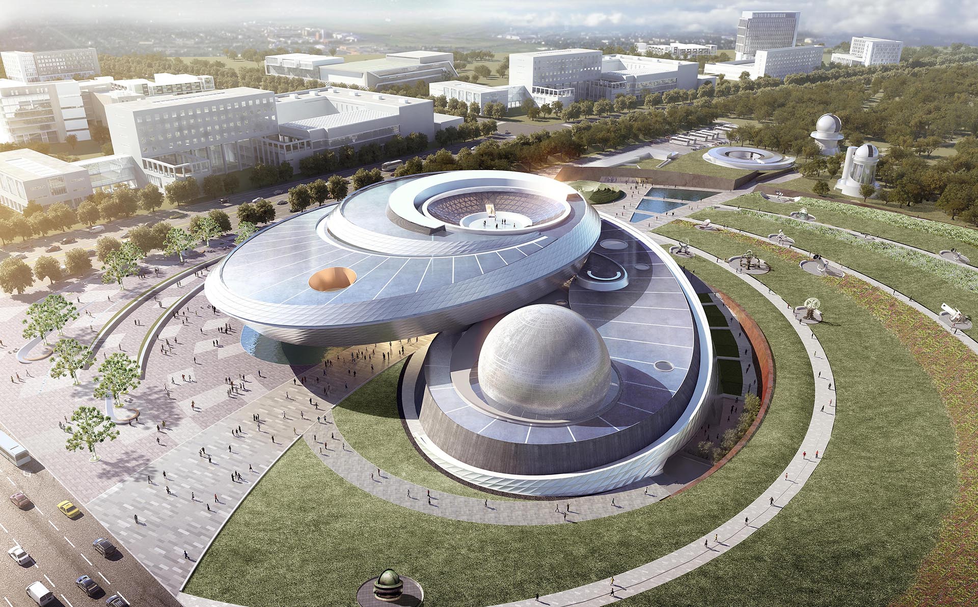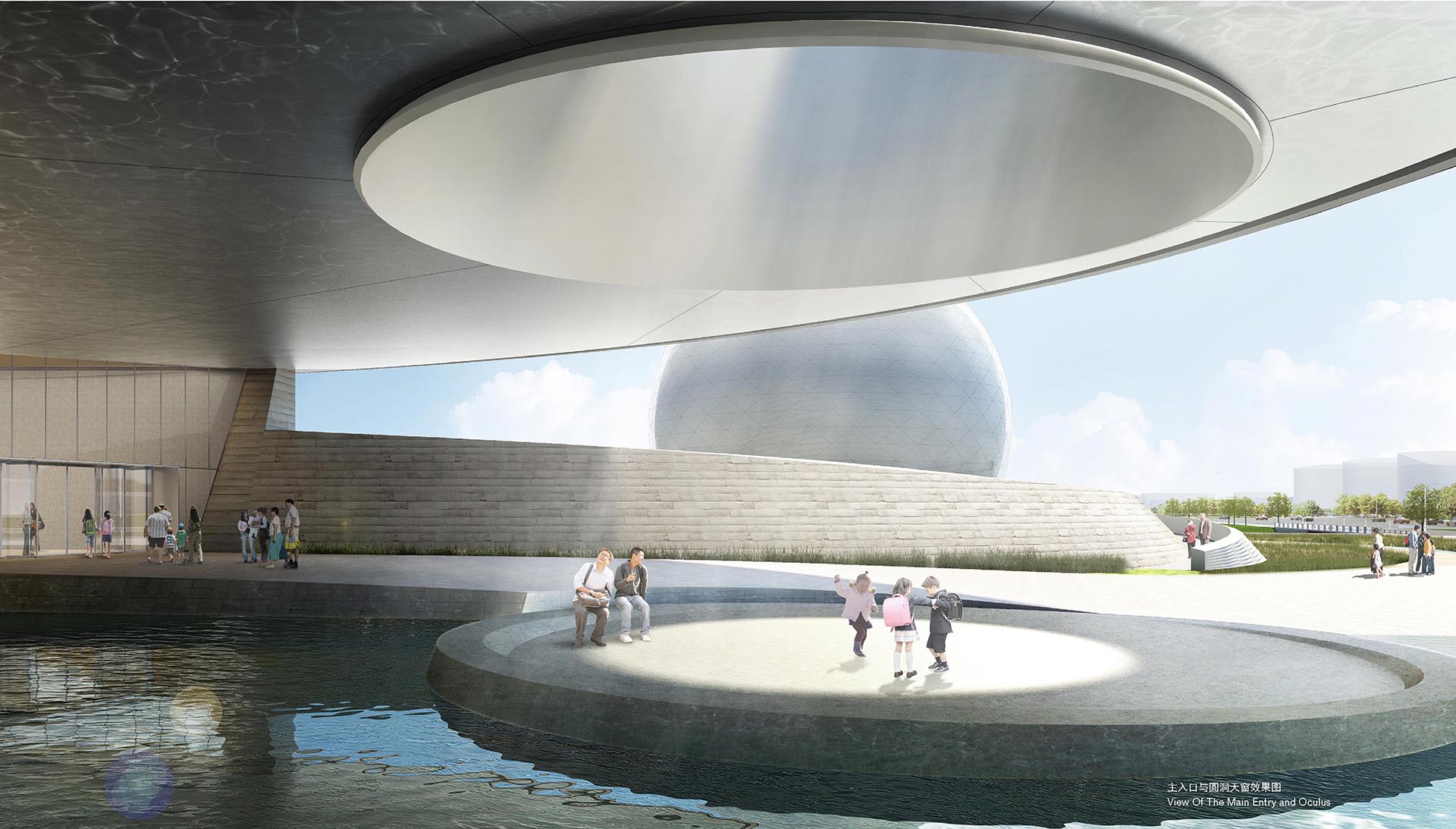 项目位于上海临港地区,该区域为本项目提供了良好的基地环境,整个建筑坐落在环湖绿化带內,北侧为环湖北三路,西侧为临港大道,南侧不远处为天然河道。整个位置对于天文观测有先天的优势,同时距离地铁16号线地铁站不到一公里路程,方便客流的到达。与本项目同处临港地区的航海博物馆、极地海洋世界形成集群效应,提升了区域的影响力。
