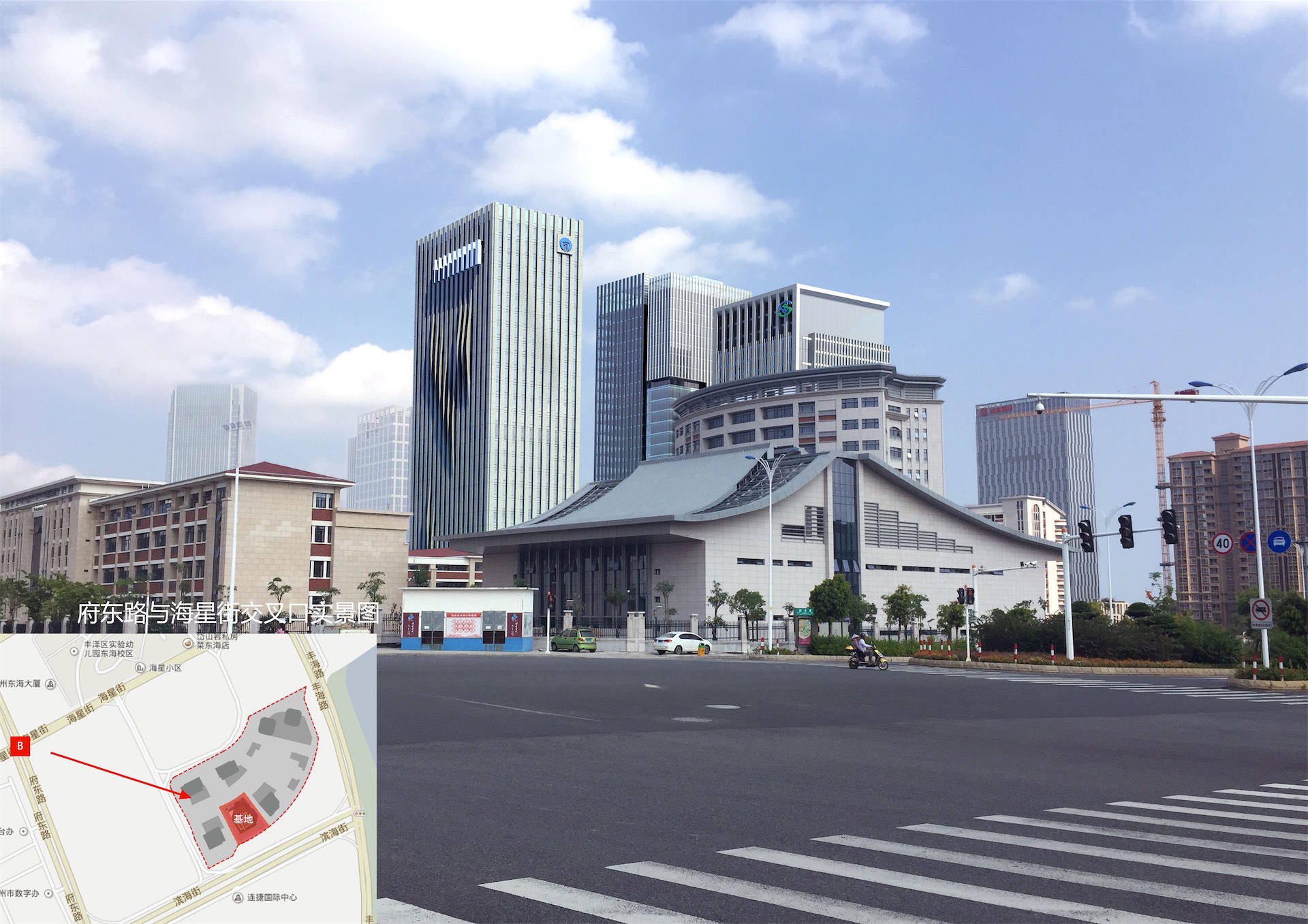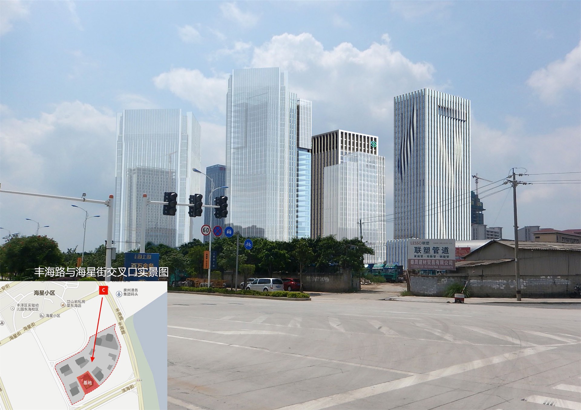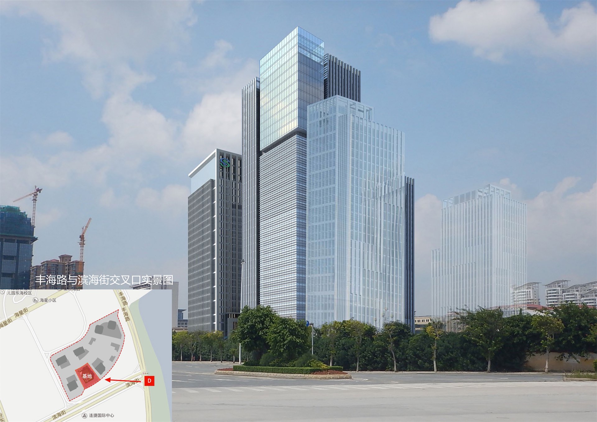 项目位于泉州东海片区总部经集聚区内。地块毗邻市政府行政、文化中心轴线以及综合商业中心,靠近公交枢纽,为今后的开发建设提供了有利条件。本项目定位为以金融、商务办公为主要功能特征的超高层甲级智能写字楼。