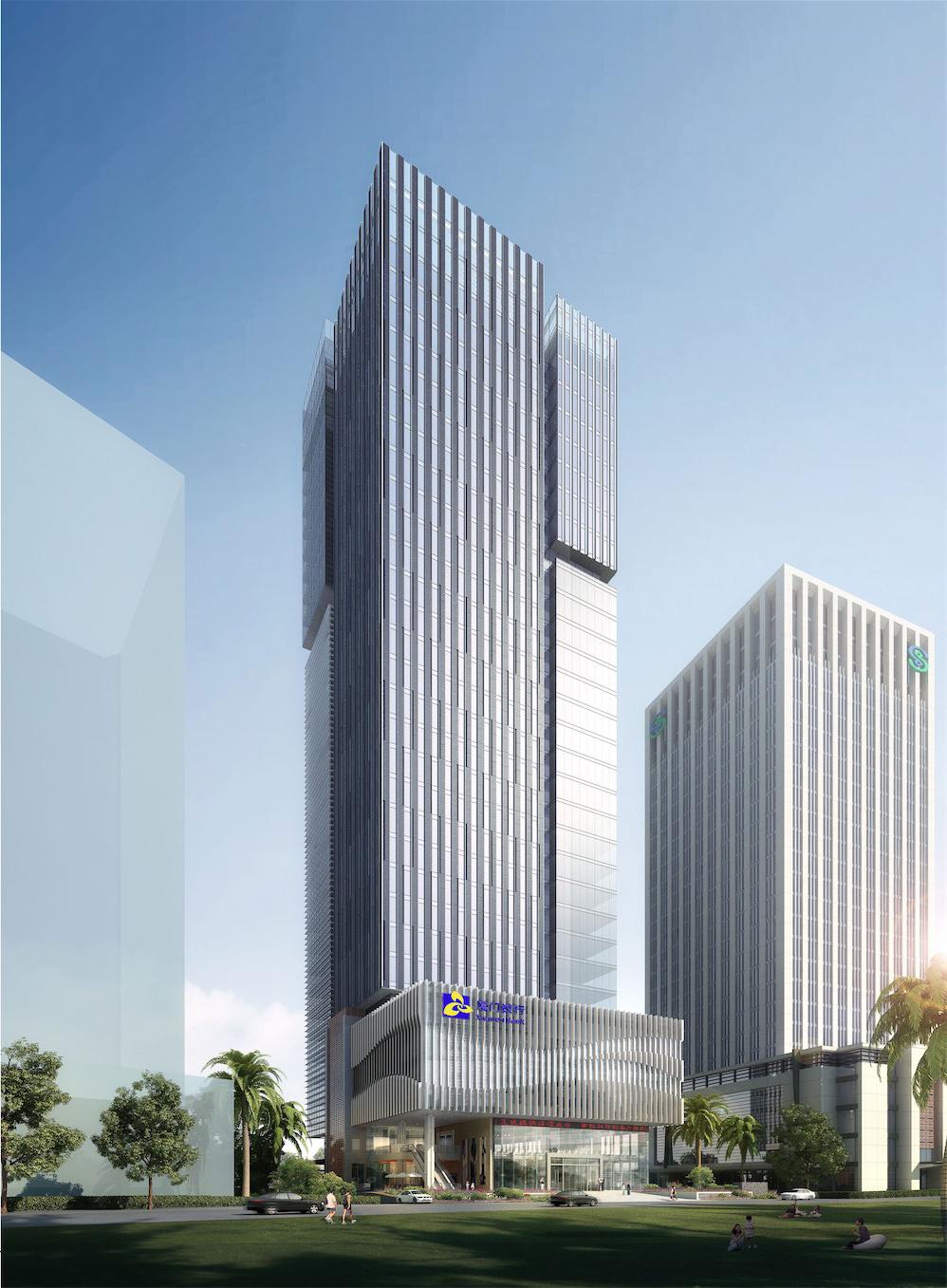 项目设计凸显银行、金融要素,具有较强的时代感和前瞻性,兼具独创性和识别性。建筑塔楼的设计在竖向化整为零,于顶部产生高低错落的体量关系,恰如层层高升如云的台步,昭示了金融企业蓬勃发展的美好前景。