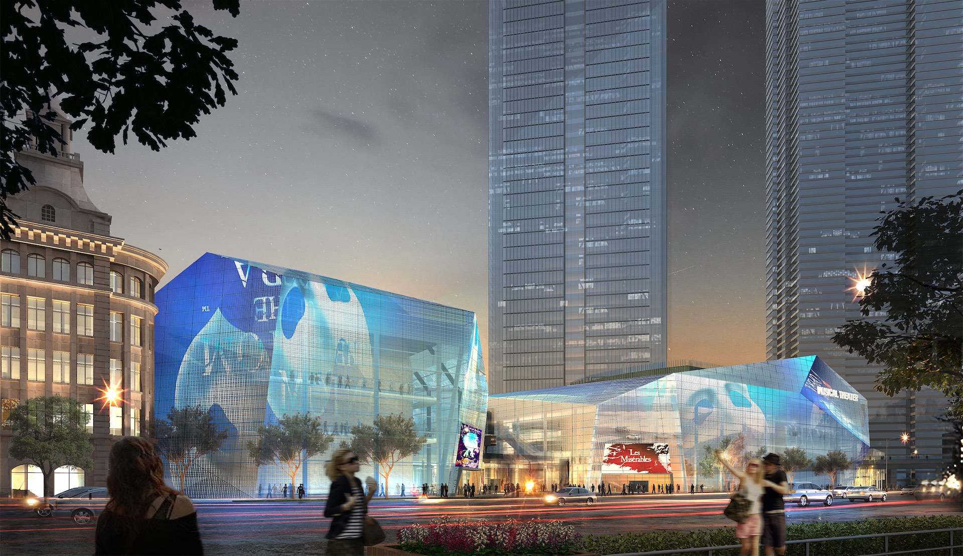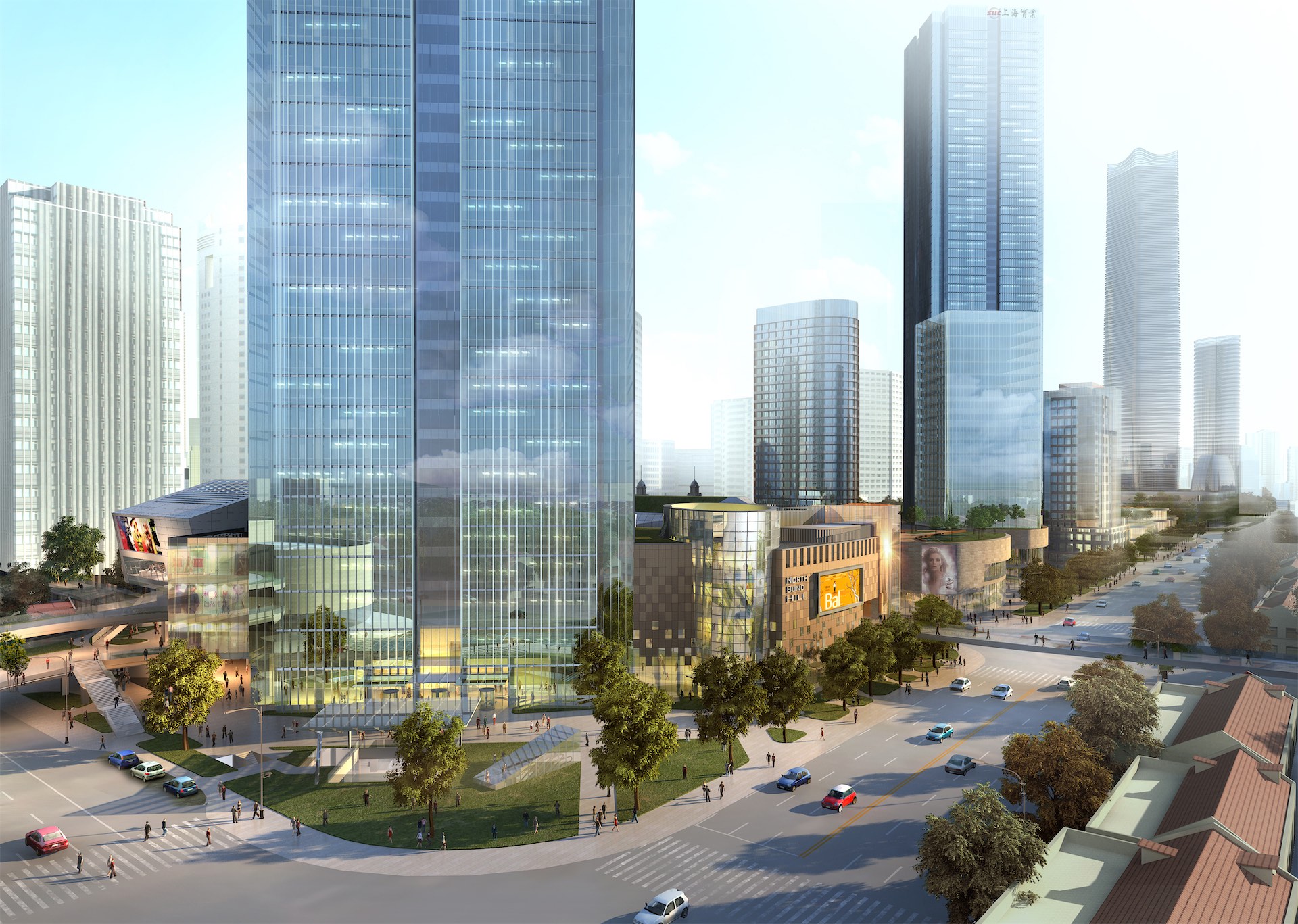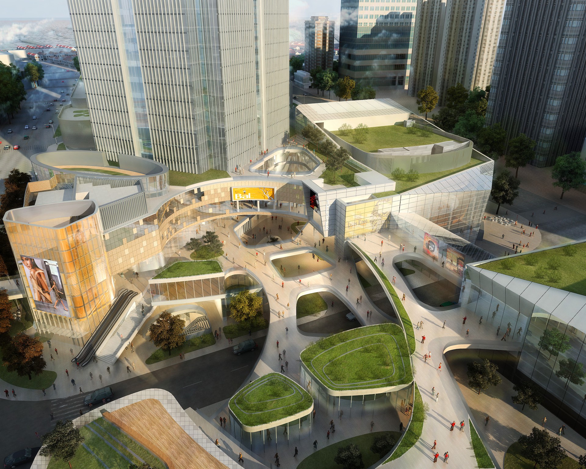 项目充分考虑各功能相互兼容性、及最大程度获得室内外景观方面的需求,体现“不经意的碰撞”和空间共享。地下综合商业空间和“绿廊”二层步行系统协同不同的使用功能,为行人提供了清晰合理、安全的回游动线。在场地体量和建筑造型的组织形式上,创建一个有内涵的公共开敞空间,将城市活动引入到项目地块的中心区域。