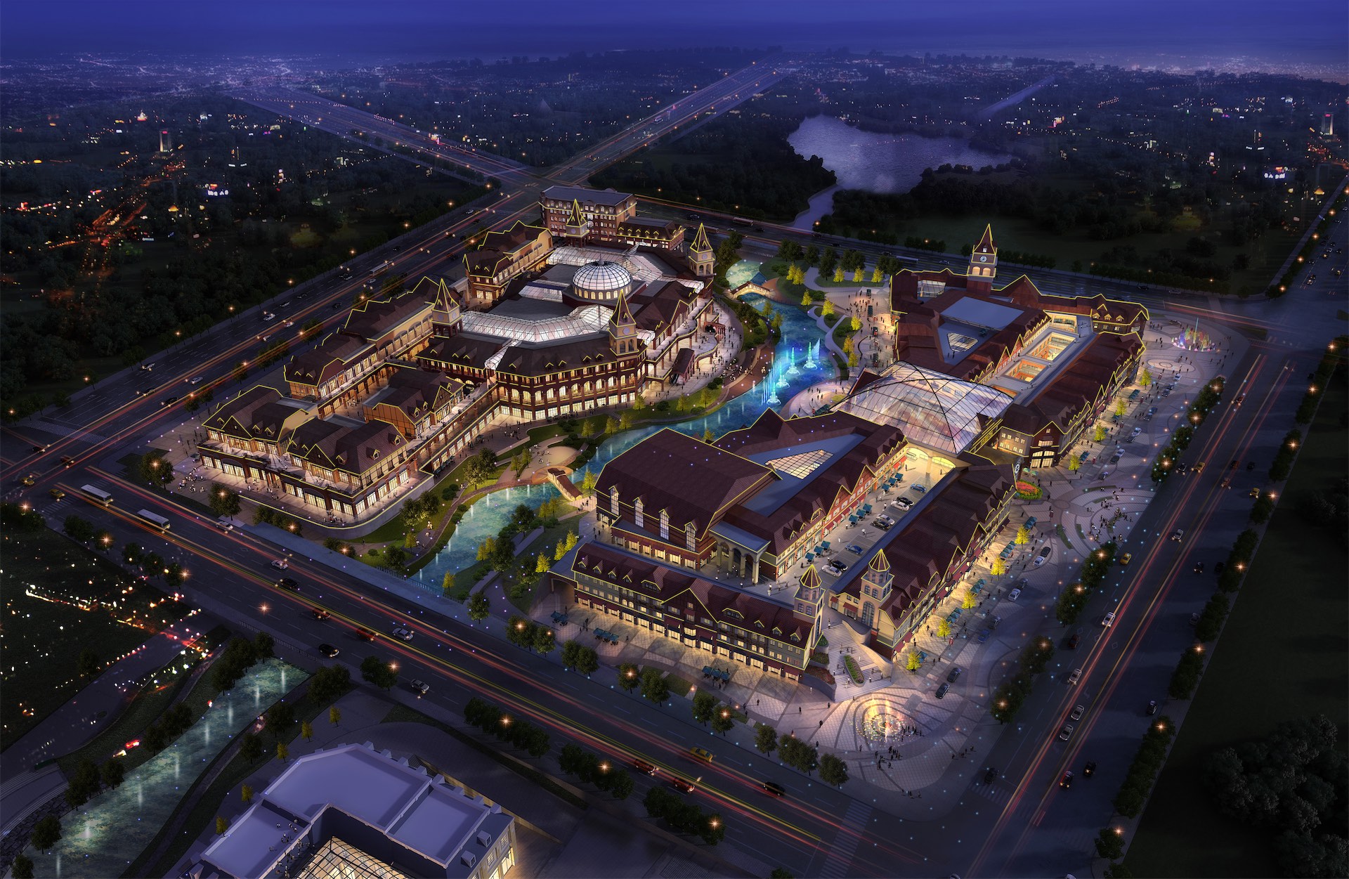建筑造型贯彻“形象整体、细节丰富”的设计原则,将侧山墙、双折线屋顶及哥特式尖顶等北欧建筑的视觉符号与当地文化风情进行简化、融汇。街区商业入口广场中央设立了地标高塔象征了区域大发展、多国大协调的强烈信念。