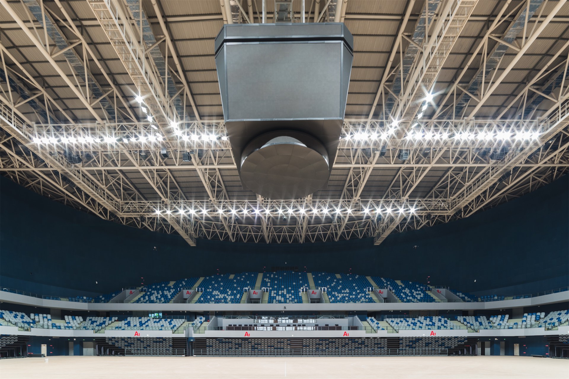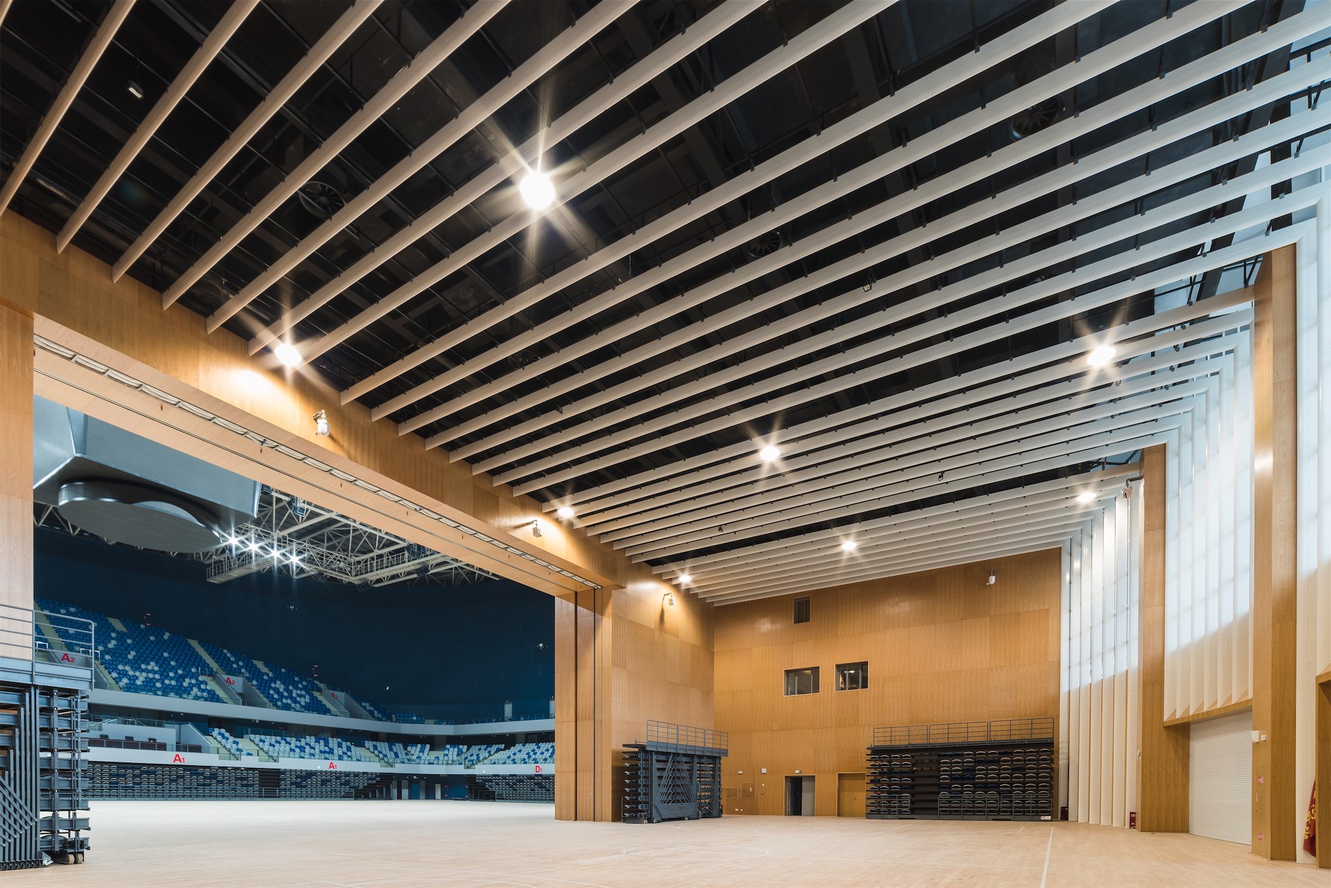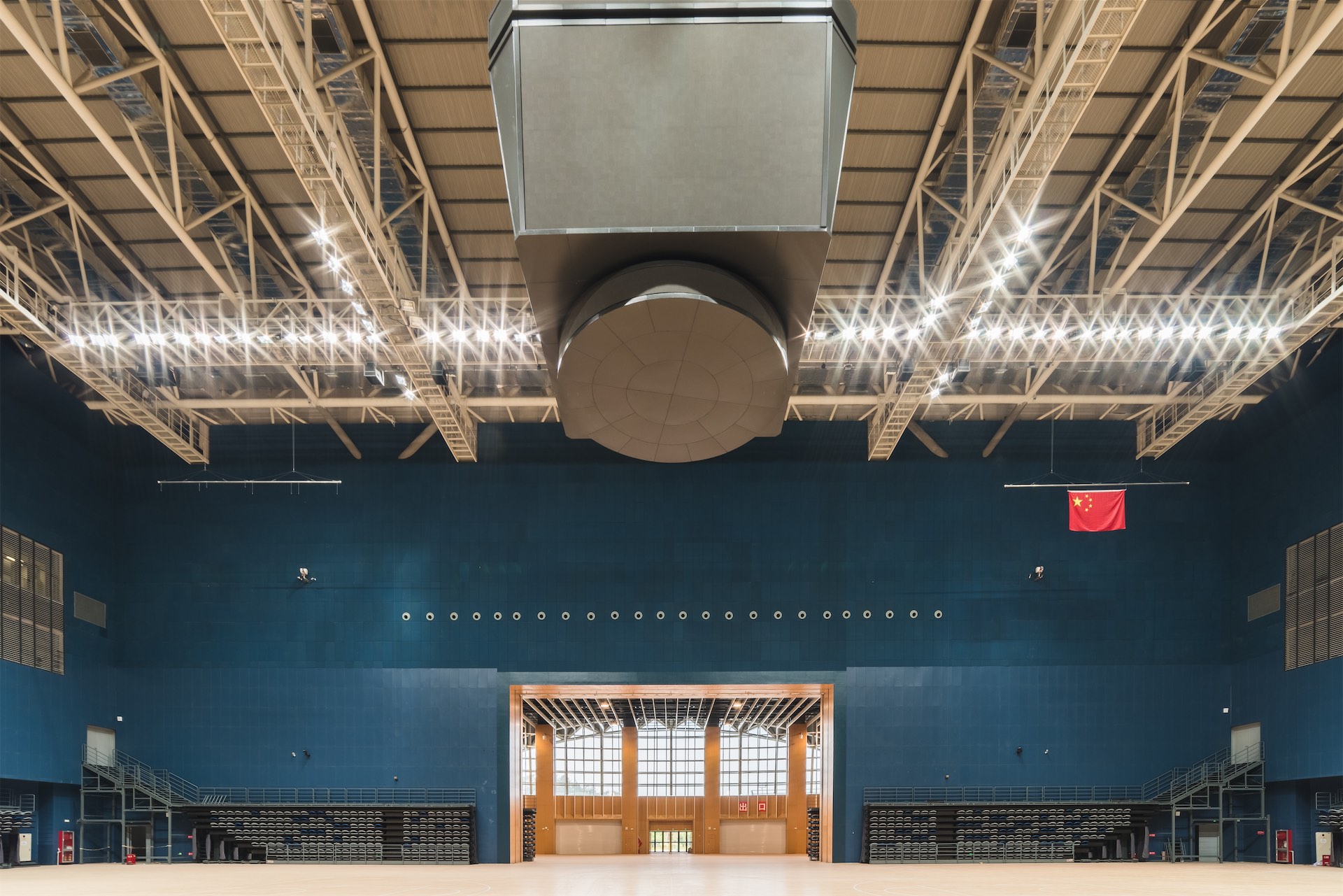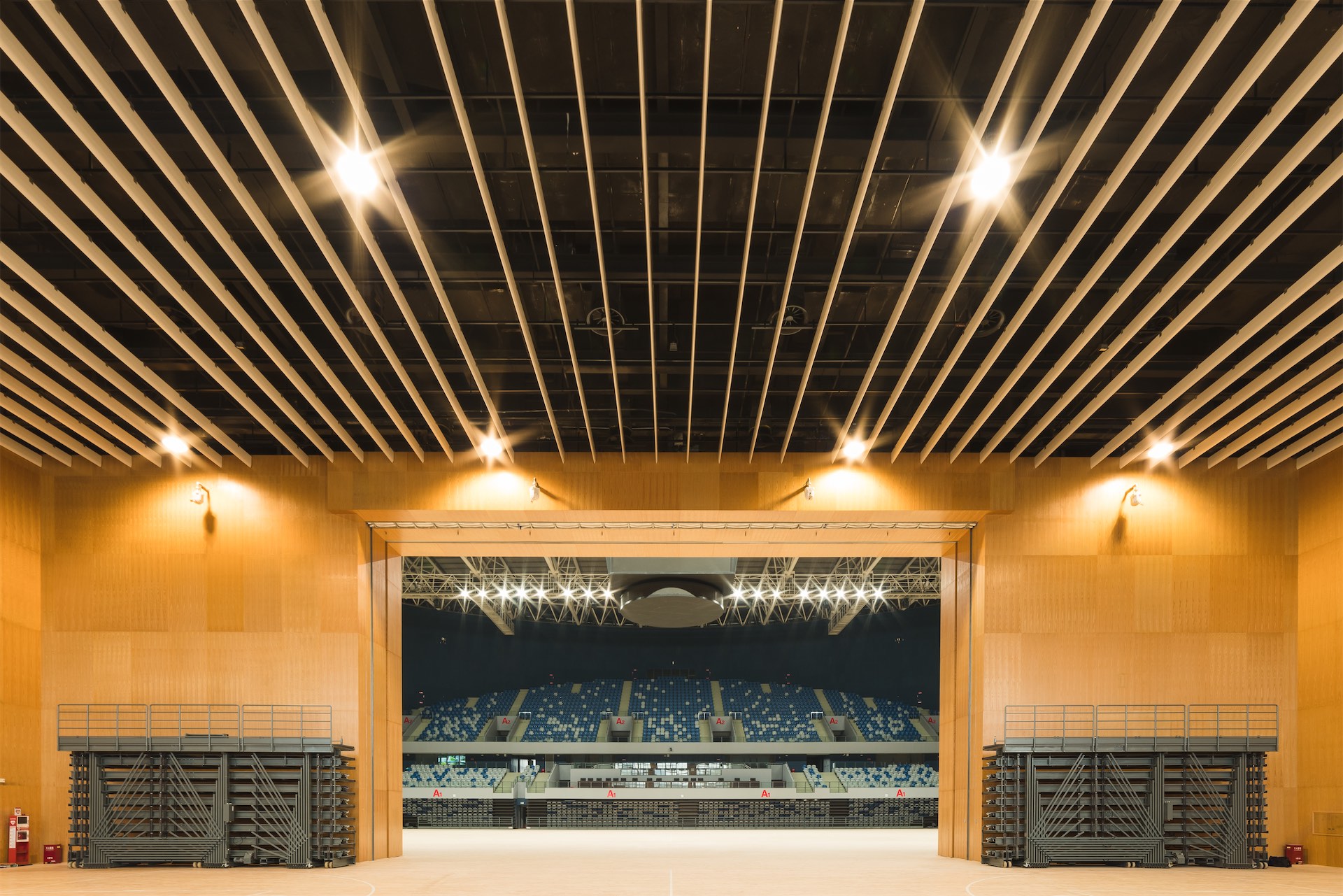 东阳市体育中心项目位于东阳江南岸,总体拟将新建的体育中心融入原有滨江景观规划体系内,使其成为浑然一体的滨江景观带。总平面布局为由建筑单体围合而成的滨江体育文化公园,覆盖面积为30公顷 ,其中包括体育场、体育馆、游泳馆的场馆区以及相关的室外训练场地和水体公园。