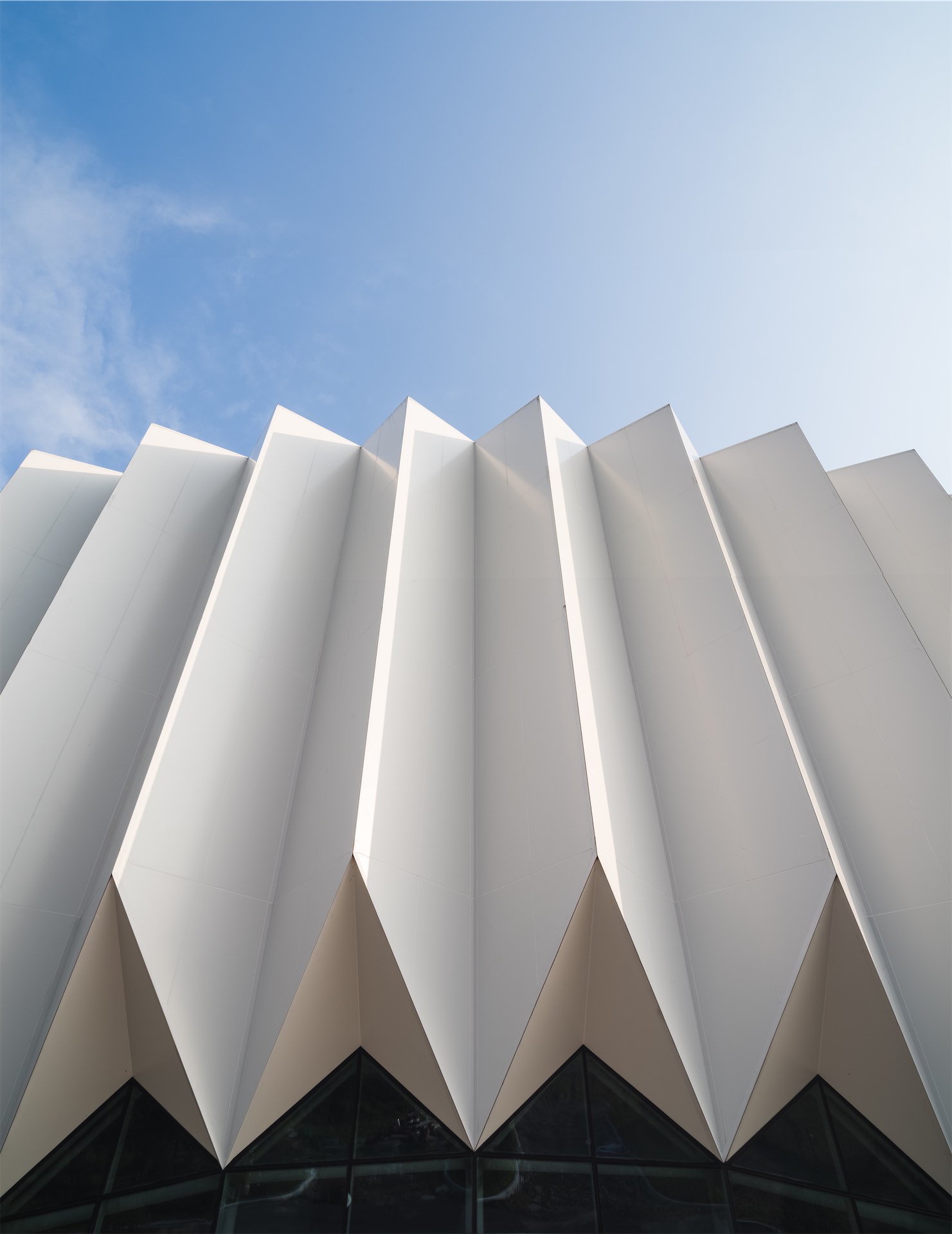 主题之二,抽象主导性主题——“江帆”,通过重复出现、个性化的构成元素统一控制所有场馆的建筑设计,并反复应用于水体公园的设计中。场馆区与水体公园相互呼应、统一和谐。