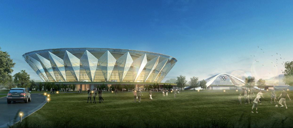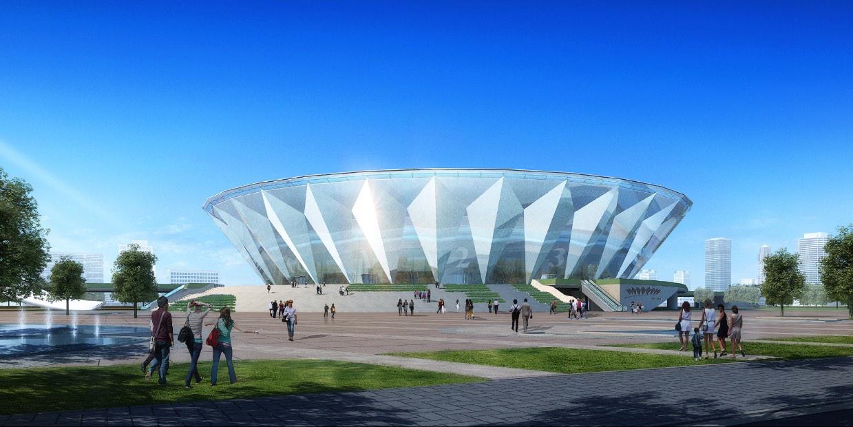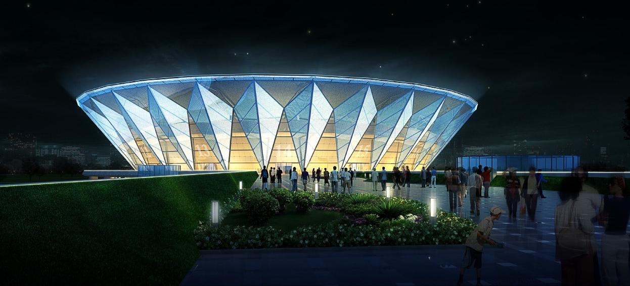 项目外立面表皮32品折面处理干净利落、线条刚硬,其材料采用了风格统一的玻璃材质,起伏变化极富节奏与韵律。整个场馆的造型干净纯粹,玲珑剔透,以简单的语言刻画出多面的性格,丰富多变的表皮在阳光下折射出璀璨夺目的光彩,如同一座代表了武汉城市精神及文脉底蕴的水晶奖杯,网球中心半径40.5m、面积达到5150平米的大内场模式。内场的活动看台可根据各项不同比赛的需求进行调整,以此达到网球中心使用功能的最大化。